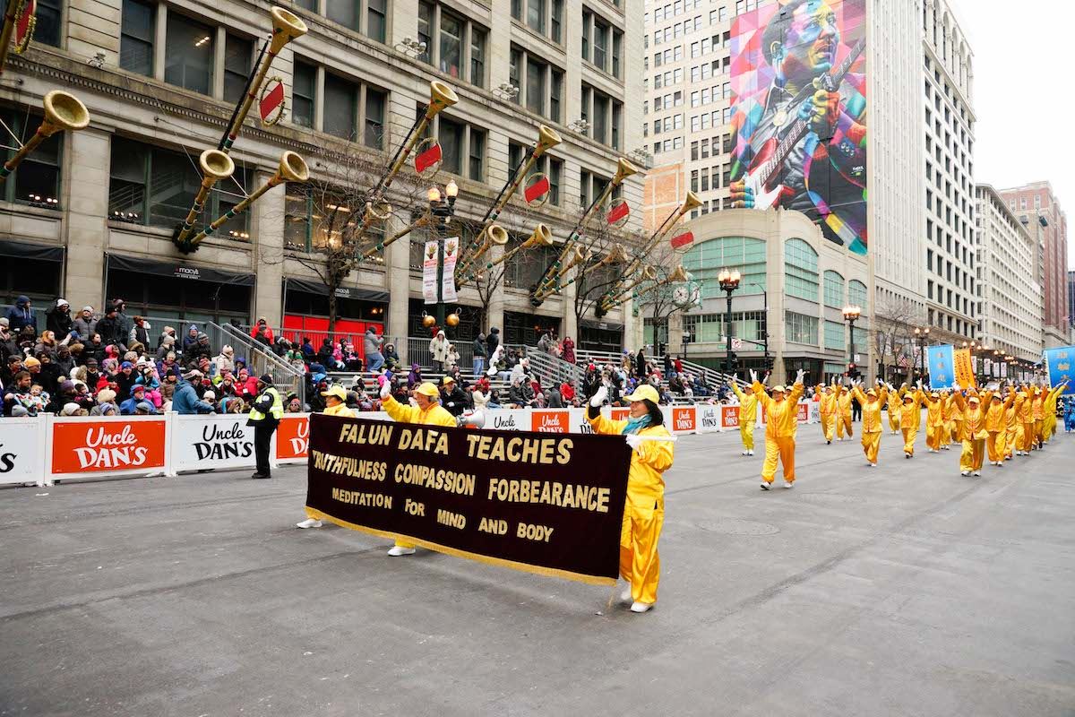 ![]() 图1~4:芝加哥法轮功团体第十六年连续参加感恩节大游行 |