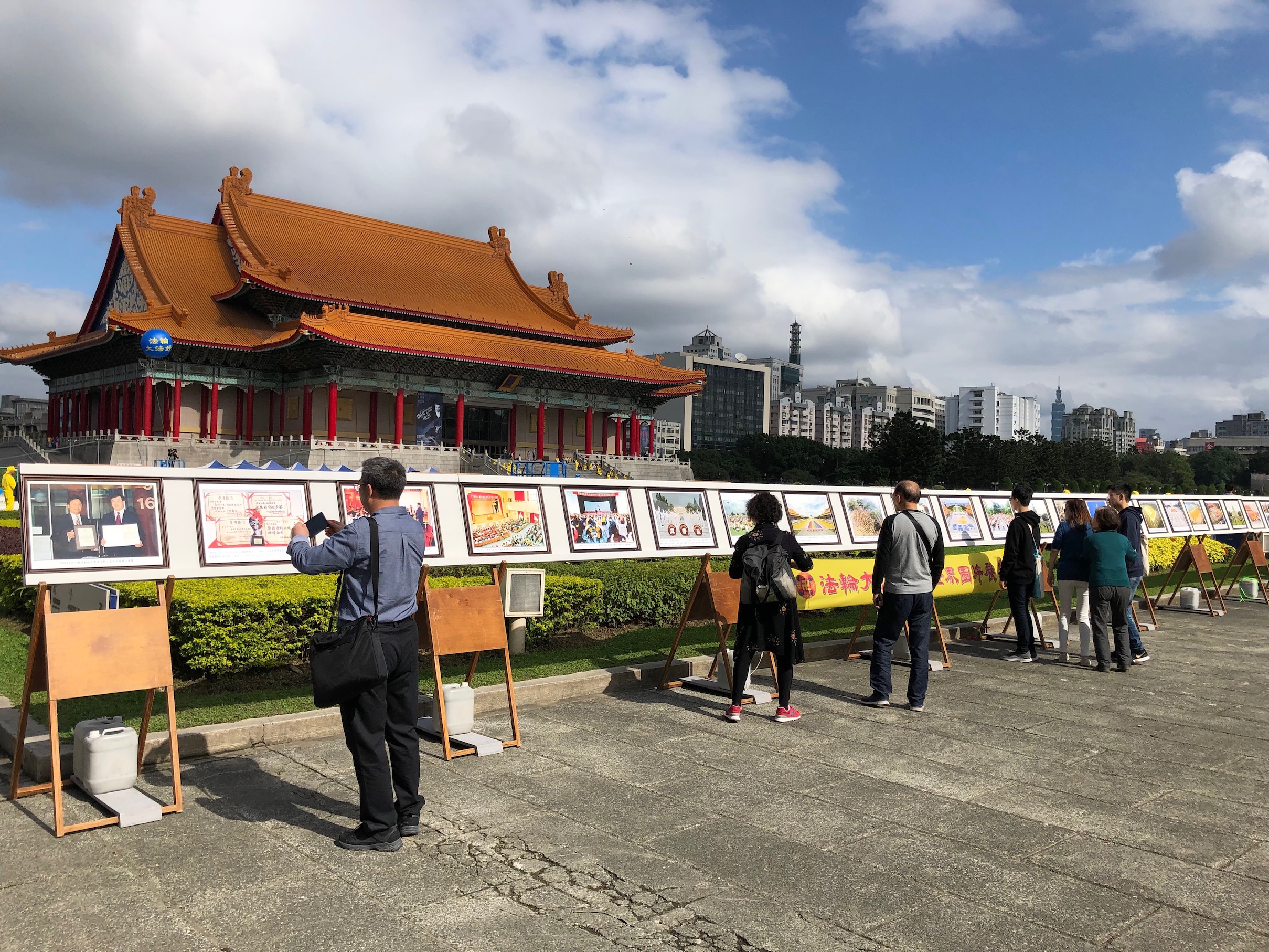 来自中国福州的林先生,静静地看着“法轮大法正法之路图片展”,并不时拿起手机拍照记录排字活动。他表示,来台湾一周适逢选举期间,见证到台湾民主自由的社会氛围,而在自由广场看到法轮功学员们的活动,更感到震撼。林先生说:“台湾真的是个民主自由的地方!中共一党专制,不会允许这么多人的团体(存在),人民的生存空间都受到中共的限缩。”