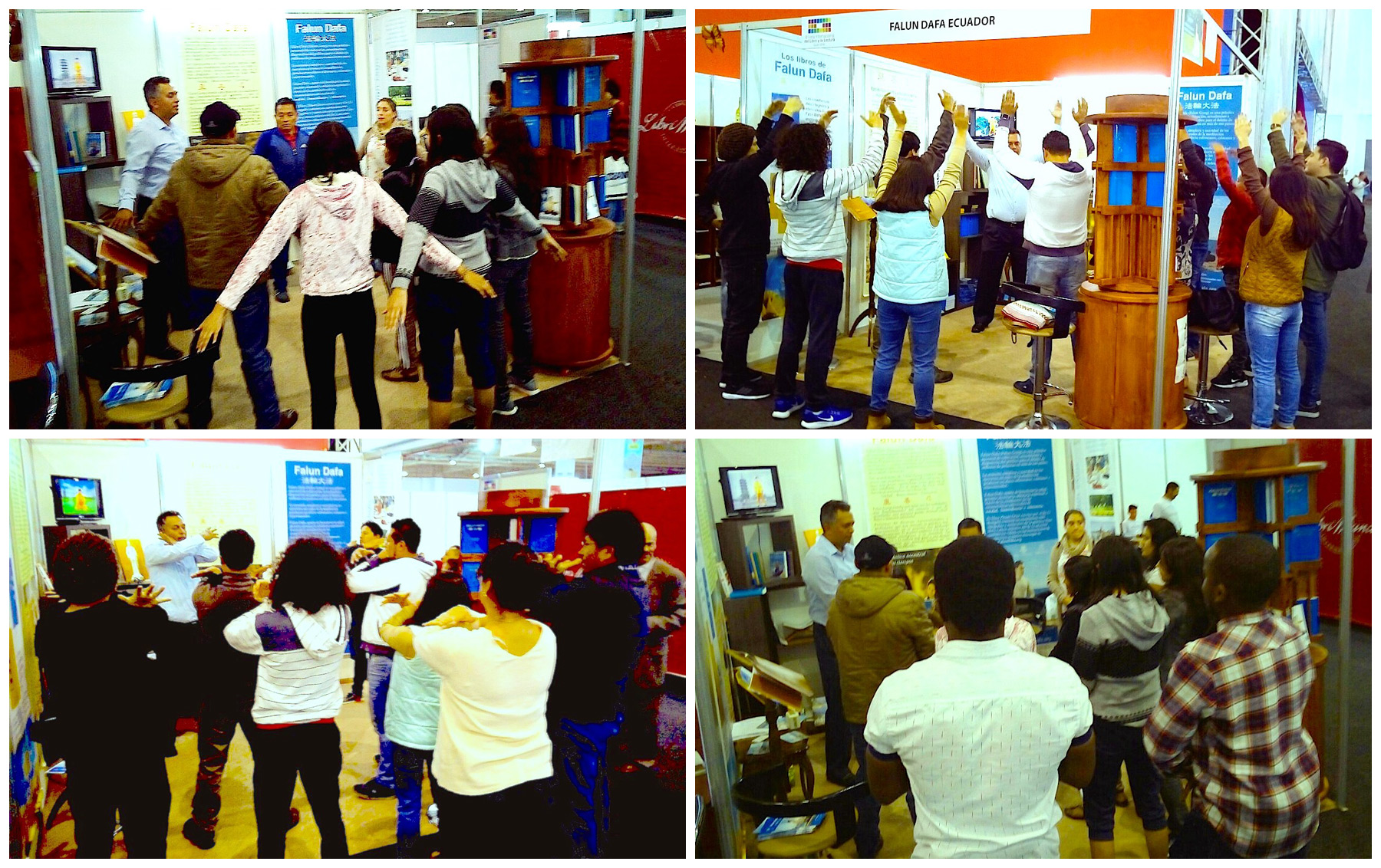 一天,厄瓜多尔驻中国领事的一位亲戚来到法轮功学员的展台,咨询什么是法轮功,学员告诉他,我们正要教功,你可以来试试,带着他和几位想炼功的人开始学炼一至五套功法,第一套功法结束后,他兴奋地告诉学员:“我脊柱上不舒服难受的感觉消失了,我感觉到我的脊柱被拉直了,太好了!真的太有趣了,我会安排好我的时间继续学炼法轮功。”