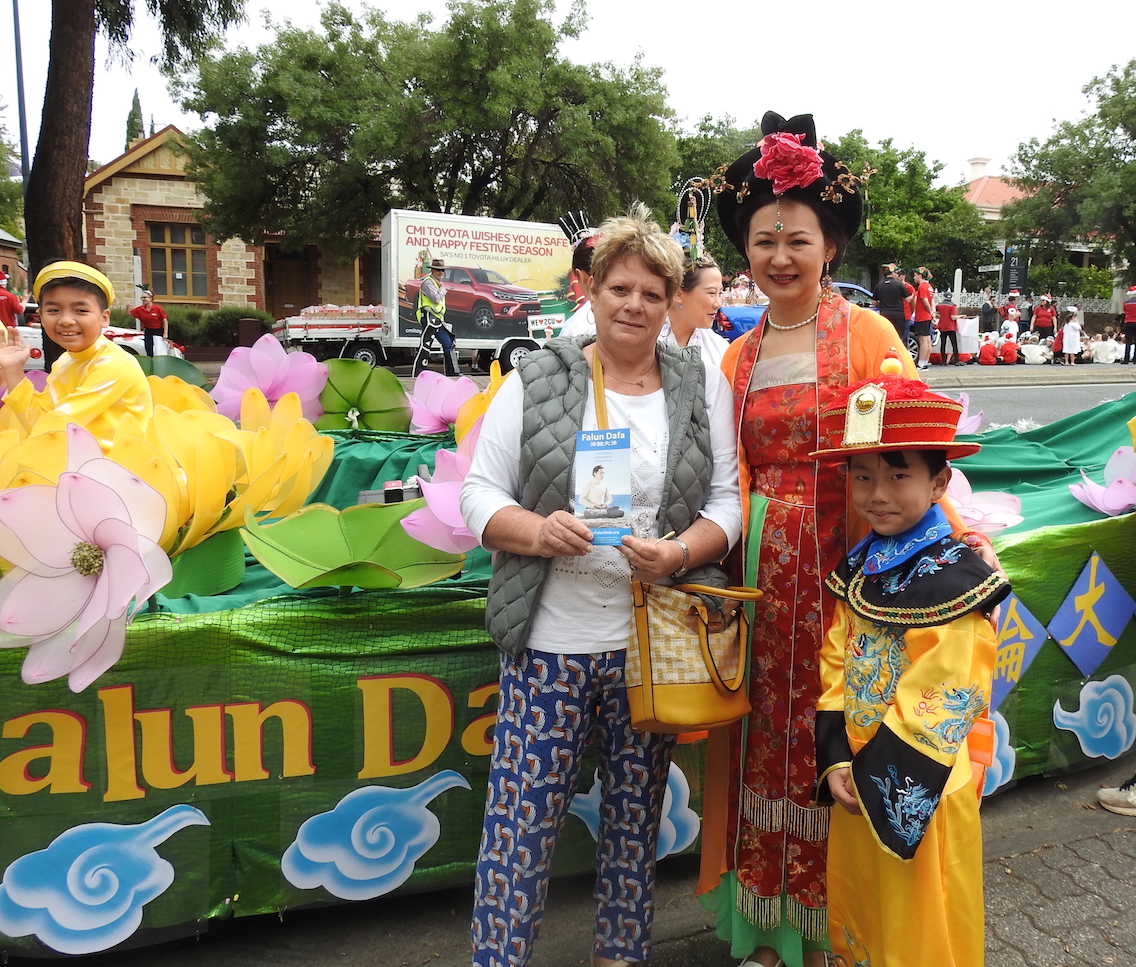 观看游行的人群中有很多华人家庭,他们都表示很高兴看到游行中有法轮功的队伍。在诺伍德观看游行的李女士表示,经常在盛大游行活动中看到法轮功的花车,今年依然是那么美丽。“去年也有的吧,澳洲国庆日也看到的。”