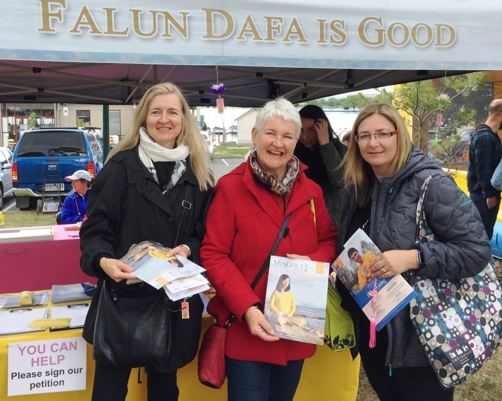 ![]() 图4:三位女士,从左至右,潘姆(Pam)、玛格丽(Margery)和丽莎(Lisa)非常急切地想学炼法轮功。 |