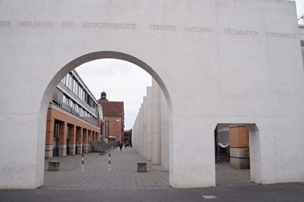 纽伦堡市位于德国中部巴伐利亚州,因二战后对纳粹的大审判成为德国人权之都。一九九三年十月二十四日,在市中心的德意志国家博物馆旁落成了长达百米的“人权之路”建筑物,以大型圆拱门为入口,沿路立着二十七根八米高的混凝土圆柱,每根柱子上分别用不同的语言刻着联合国《世界人权宣言》的三十条权利和基本自由。今年十二月将是《世界人权宣言》面世七十周年。
