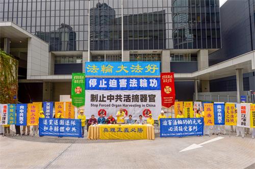 当天集会于上午十点在政府总部前的“公民广场”举行。这是民间复核政府限制使用公民广场胜诉后,法轮功团体首次进入广场举行集会。
