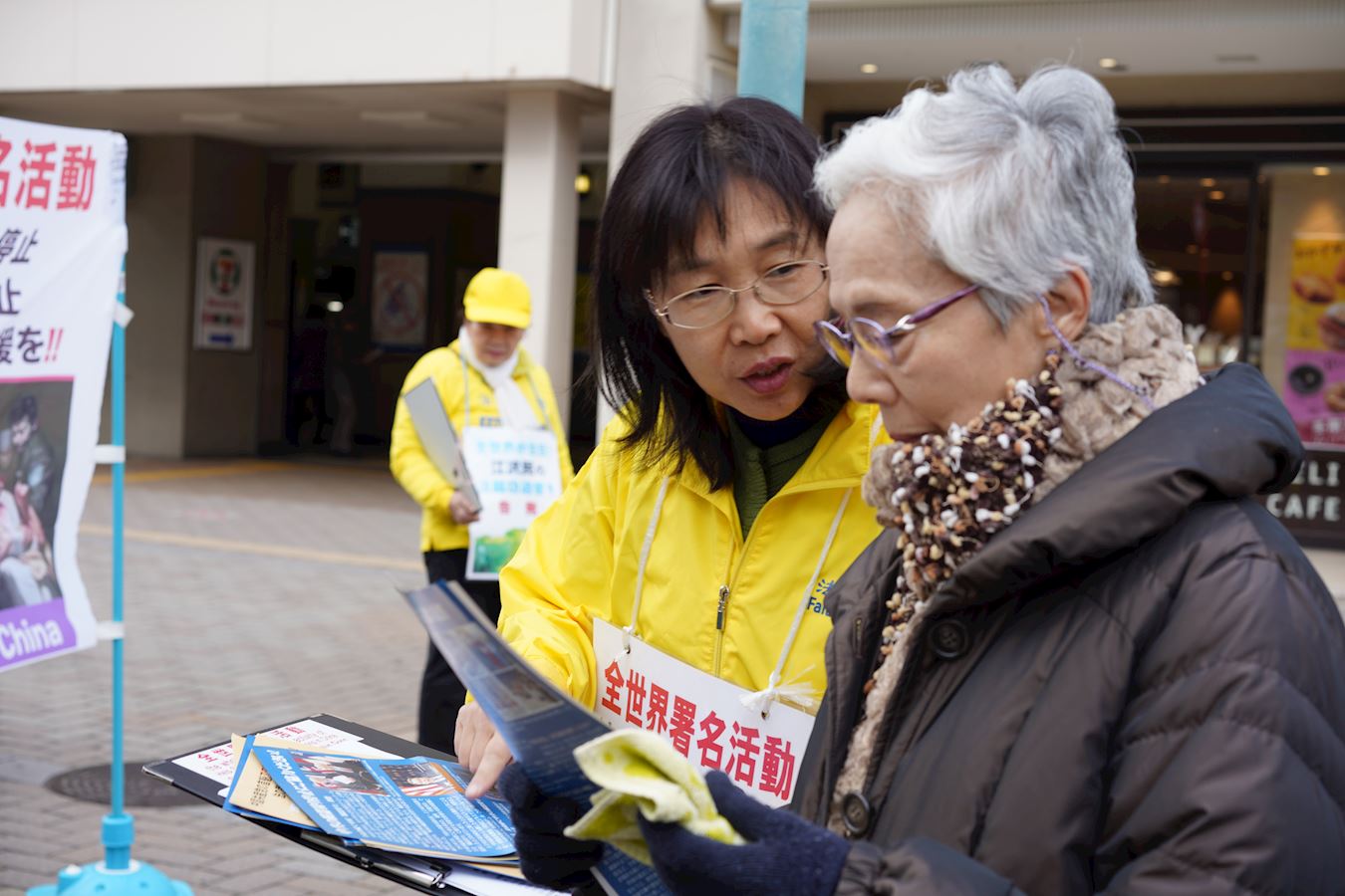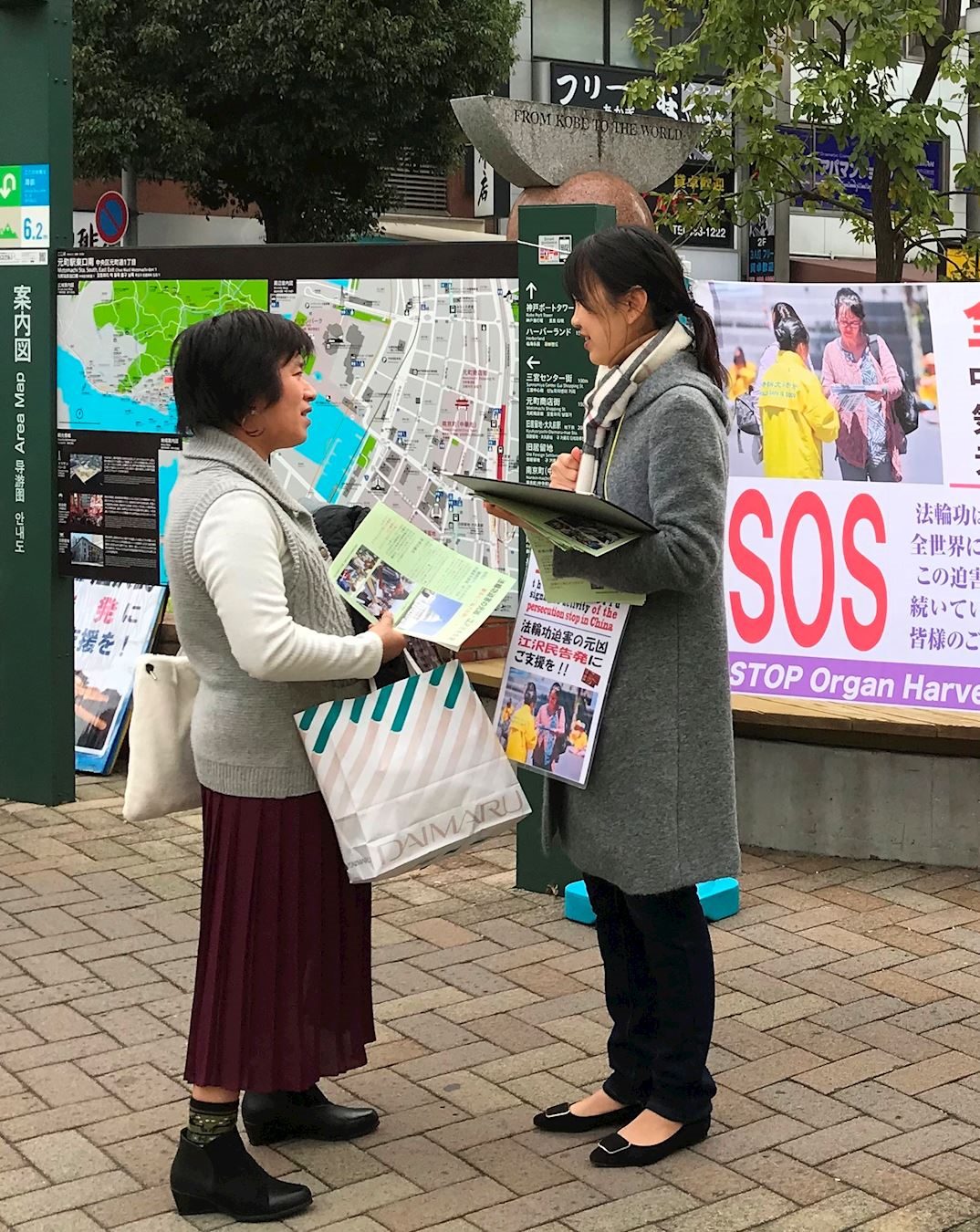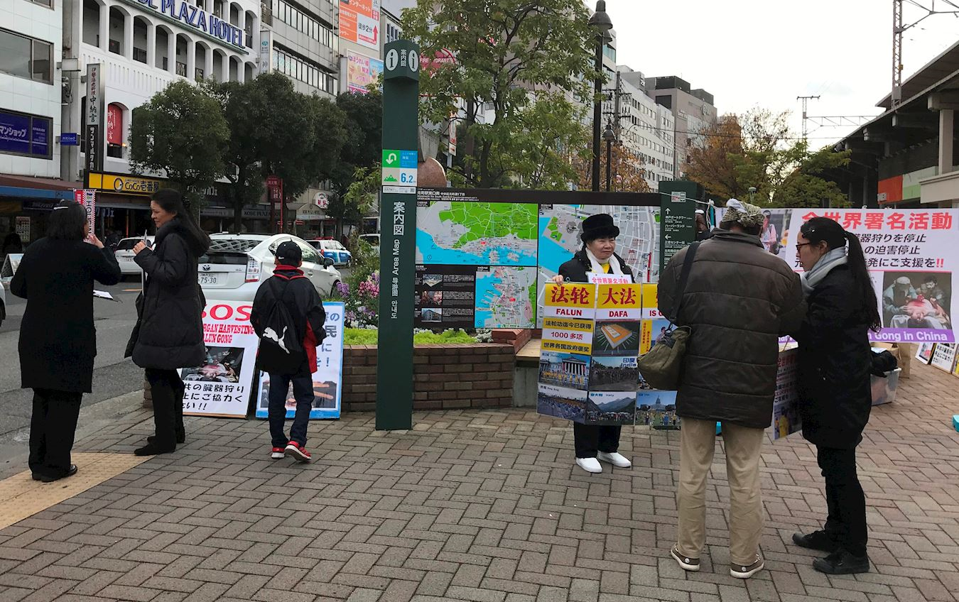 为了让广大民众了解法轮功真相,给人们带来真正美好的希望,关西法轮功学员克服天气寒冷等困难,齐心协力在这段期间在神户做讲真相征集签名活动,向人们讲述什么是法轮功,以及发生在中国近二十年的残酷迫害事实,征集签名将迫害元凶江泽民绳之以法。