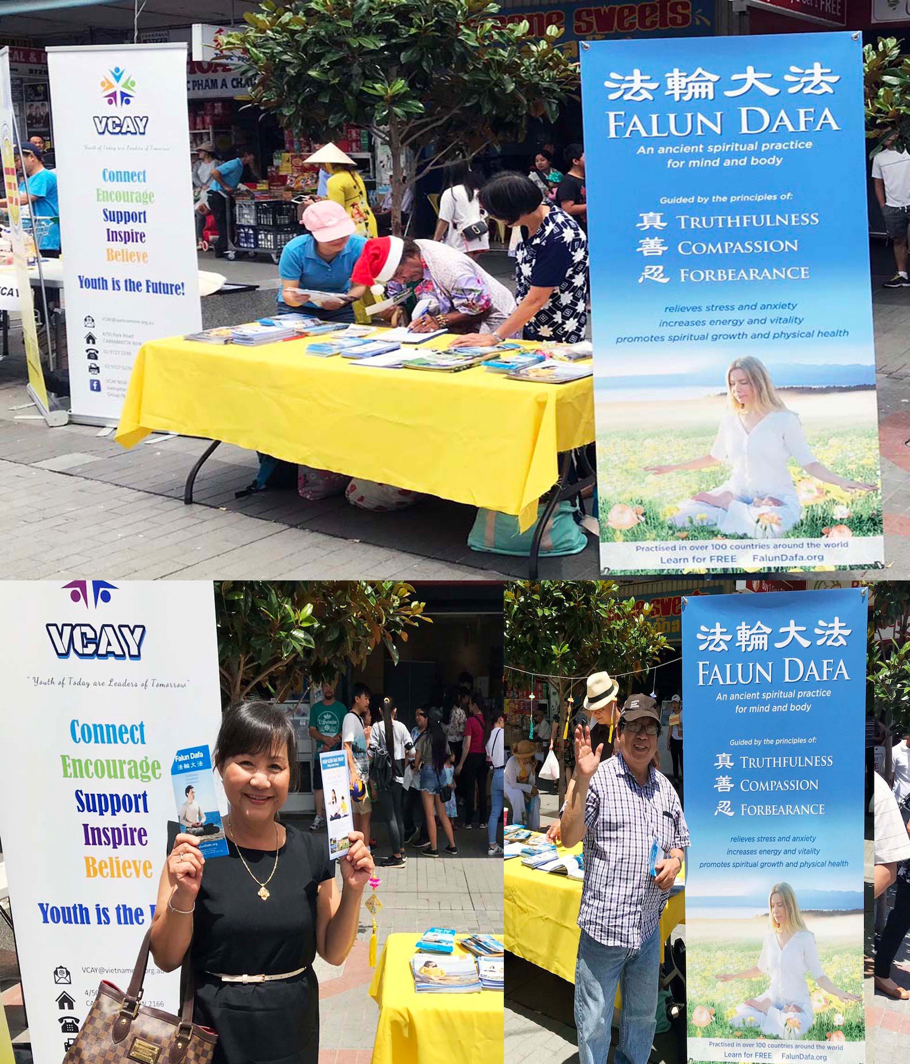 越南籍泰(Duong Dac Tai)先生听到法轮功学员询问他是否听说有关中共镇压,和活摘法轮功学员器官情况时,他说:“当我在互联网上查寻和阅读时,我了解到很多有关迫害和非法关押拘留法轮功学员,和很多有关活摘他们器官事件的信息。很久以前当我知道了这个问题时,我就开始在脸书(Facebook)上评论支持法轮功反迫害,现在仍然在做。每次有法轮功学员参与的社区活动我都有参加并非常支持他们。我认为无论你是越南人还是中国人,只要你对抗邪恶,我就会非常支持你!”