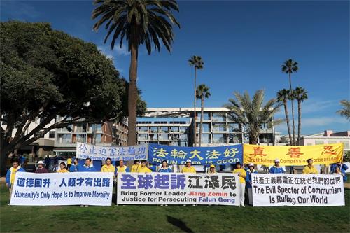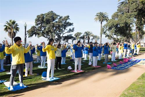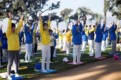 ![]() 图1~4:洛杉矶法轮大法学员齐聚圣莫妮卡(Santa Monica)海滩集体炼功。 |