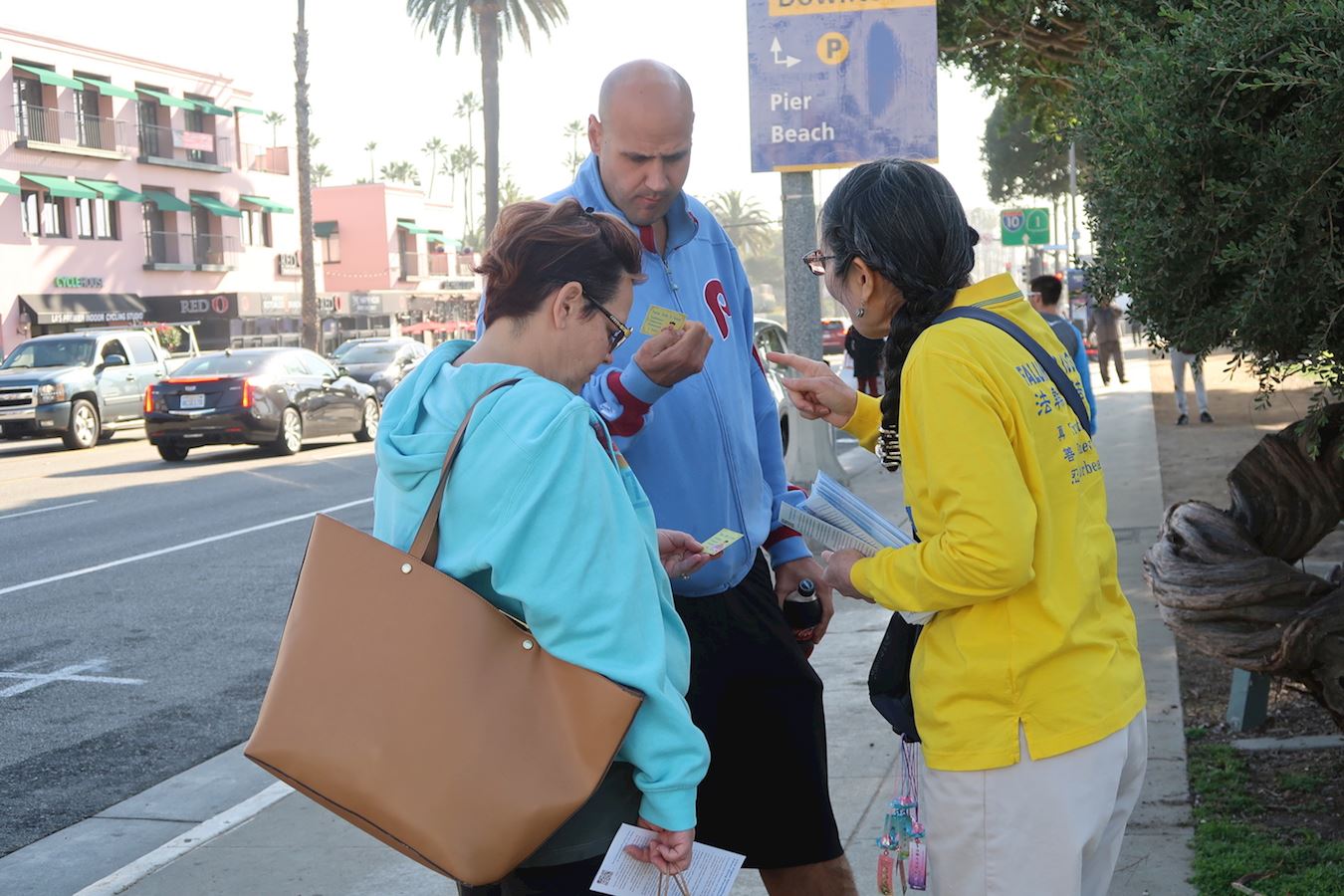 ![]() 图5:法轮功学员在圣莫妮卡海滩公园向游客讲真相 |