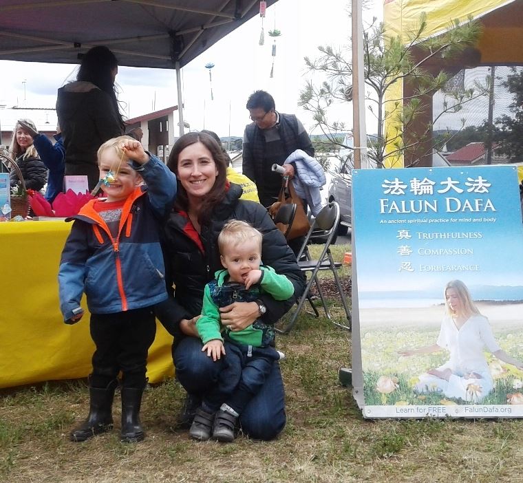 一有机会,她就带上自己的孩子们参加法轮功学员举办的洪法讲真相活动;每周四晚,玛丽在住家附近的公园晨炼,吸引当地民众了解详情并一起炼功。