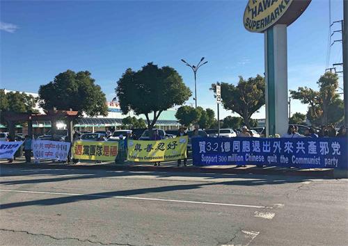 活动中,法轮功学员打出“贺3.2亿同胞退出外来共产邪*党-”、“活摘法轮功学员器官天理不容”、“全球起诉江泽民”、“制止迫害法轮功”、“真善忍好”等横幅。也吸引了大量民众驻足观看,很多司机更拿出手机拍照、鸣喇叭、竖起大拇指,向他们致意。更有民众开车经过时喊出“共产党倒台”表示支持。民众索要真相资料,现场退出党团队。