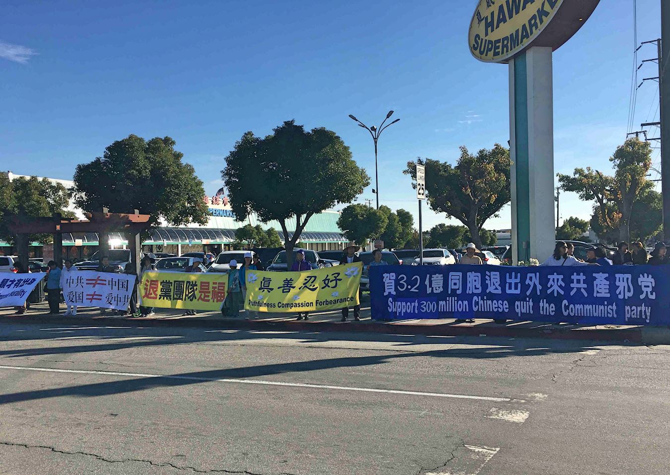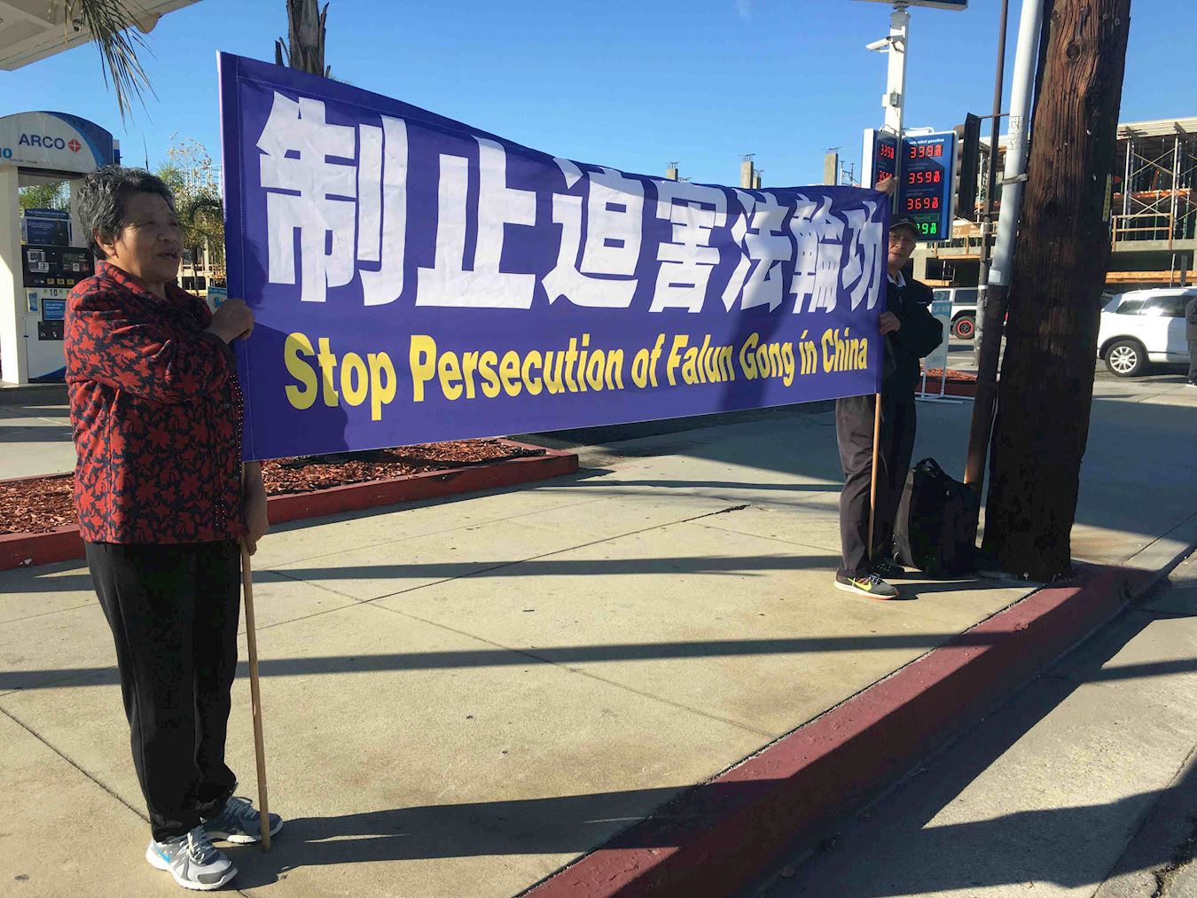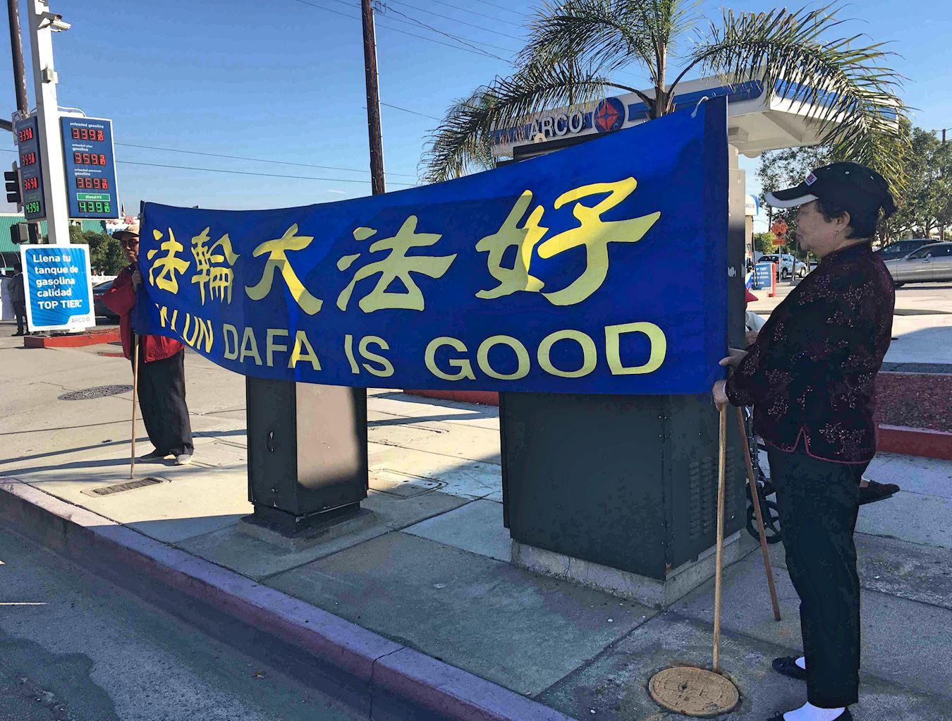 移民美国四十年的慕先生当天带着九十多岁高龄的父母散步,看到法轮功学员在公园炼功,他主动索取真相资料,说:“我觉得法轮功很好,教人‘真、善、忍’,看他们(法轮功学员们)在那里打坐也很宁静。”