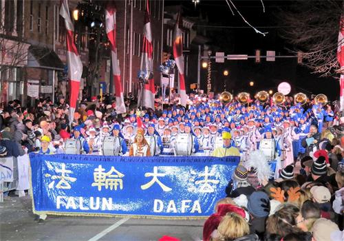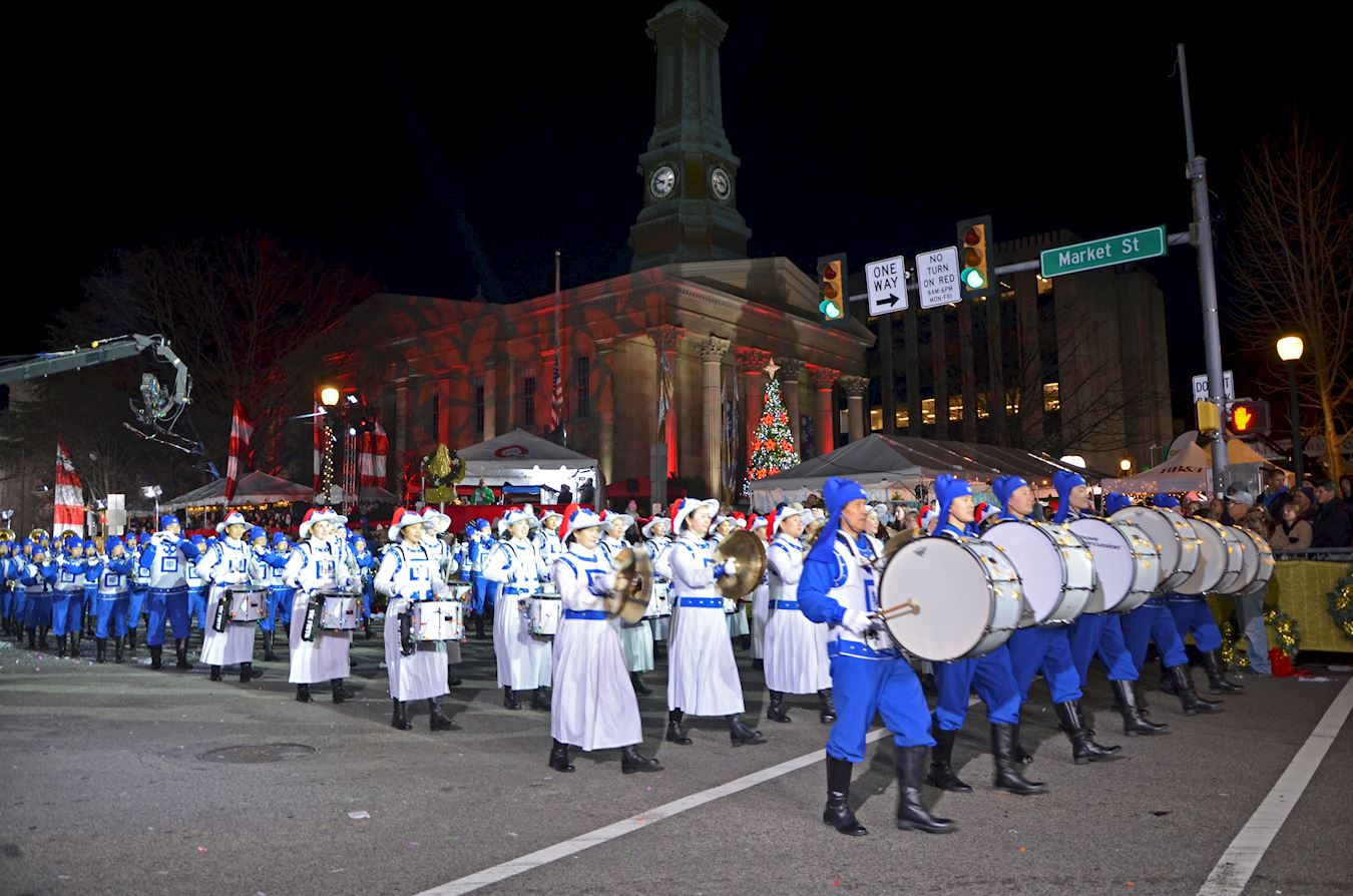 除了当地学校、商会及企业、舞蹈团体外,游行团体还来自新泽西、纽约、德拉华、弗吉尼亚等州。天国乐团的出现让许多观众感到惊喜,赞不绝口。今年是天国乐团第二次应邀参加这一传统圣诞庆祝活动。主持人向观众介绍说,天国乐团成立于二零零五年,由法轮大法学员组成。法轮大法是促进身心健康的功法,老少皆宜。