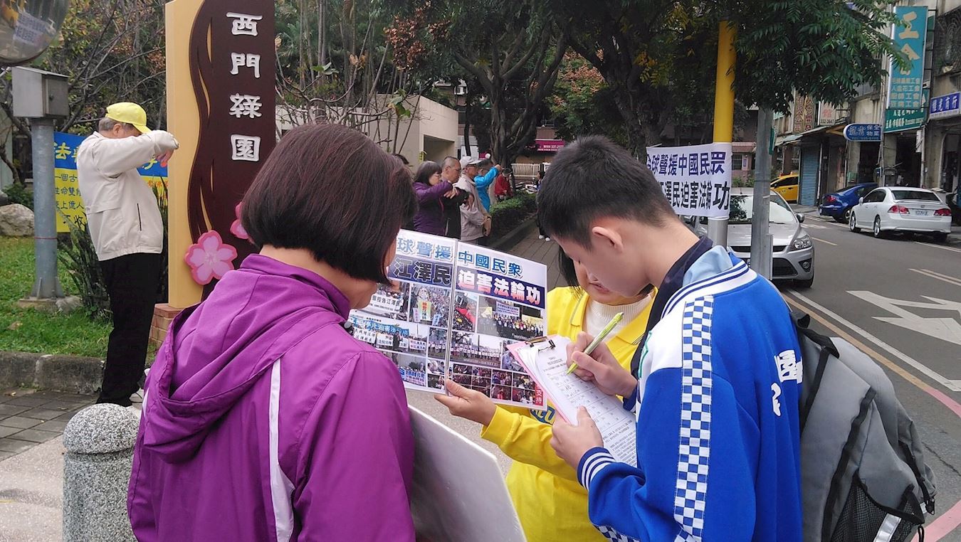 有位高中生,仔细看完举报书内容后,签名支持控江。一位在篮球场打球的原住民青少年,听了真相后,不但签名,还找来其父母及同伴一起听真相也签下名字支持。也有骑摩托车的人士在路旁等候时,听完真相后马上签名。