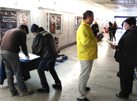 在首都索非亚,法轮功学员在索非亚大学设置了征签台。二个小时内,有七十位民众在要求停止迫害,支持法轮功的征签表上签名。一位了解真相的女士说,法轮大法的真、善、忍原则在她心中占有非常重要的位置。
