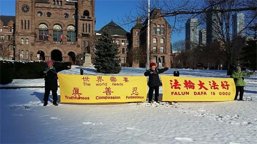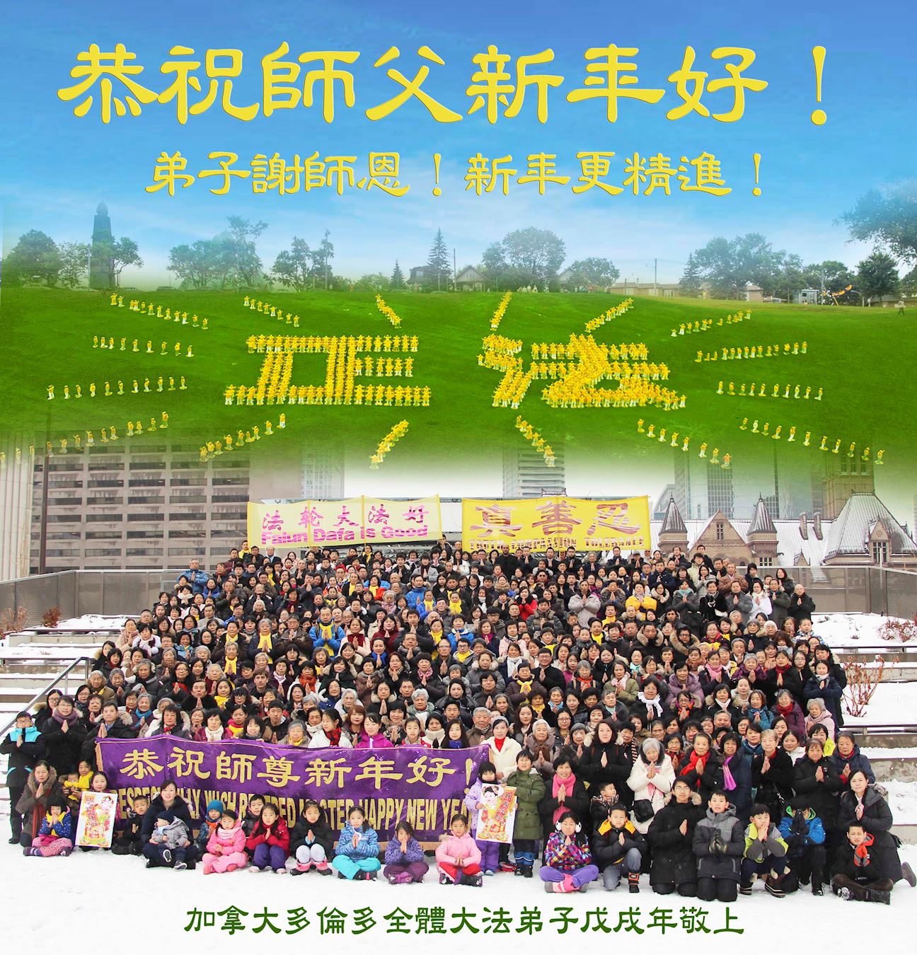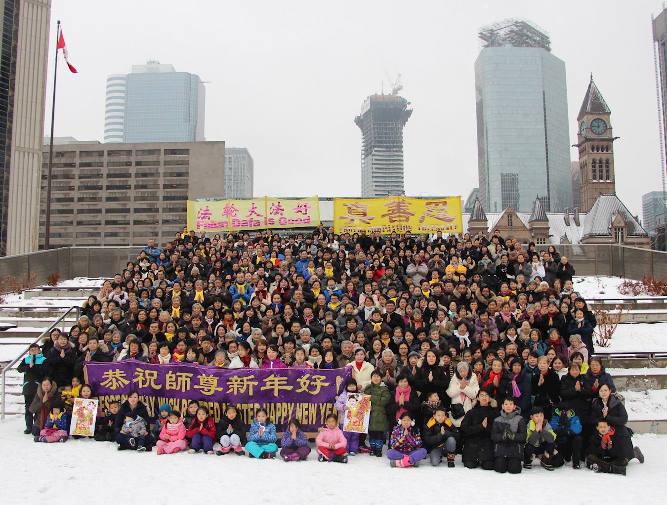 ![]() 图1~2:中国新年即将来临之际,多伦多法轮功学员聚集市政厅前给慈悲伟大的师父拜年,恭祝师父新年好! |
