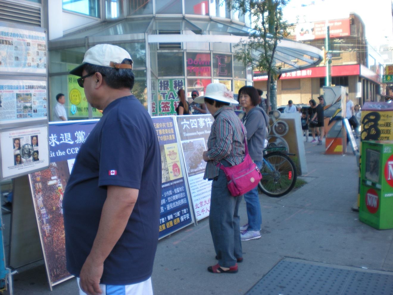 一天在在多伦多大学的真相点,来自山东的王先生一家三口听完真相,思想发生了很大的转变,不仅做了“三:退.”,还问候大法师父好!