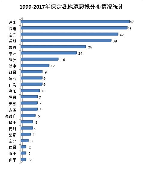 三、 保定各地参与迫害法轮功遭恶报分布情况统计