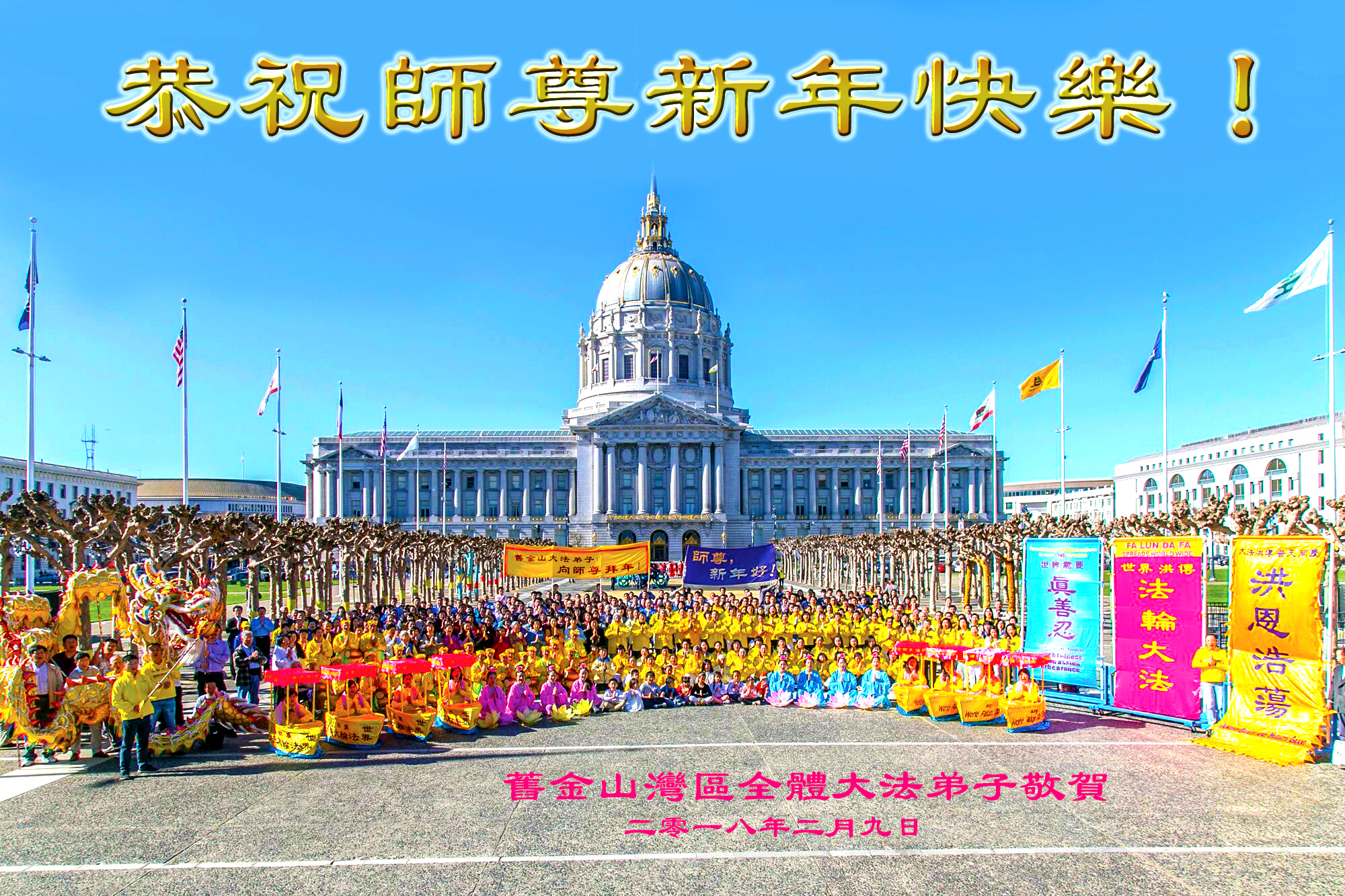 全体大法弟子和家人向伟大的师尊!