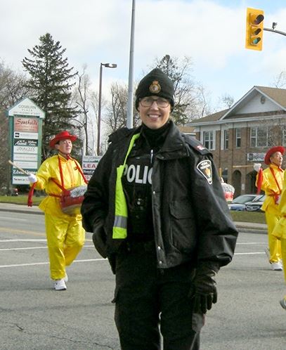 二零一五年十一月二十八日多伦多天国乐团参加了万锦市的圣诞节大游行(Santa Claus Parade)。万锦市警察局警官Denise Cartier在大游行现场执勤。Cartier警官说:“天国乐团的演奏很精彩,音乐很优美!”