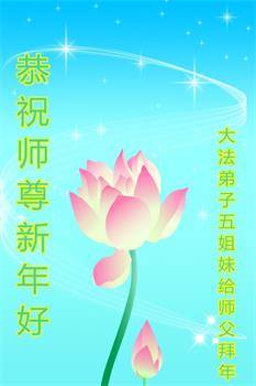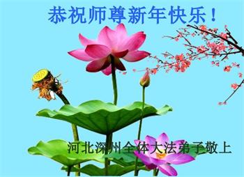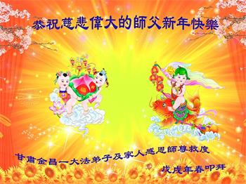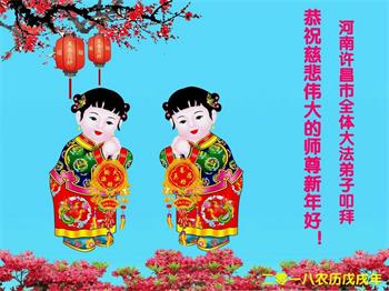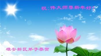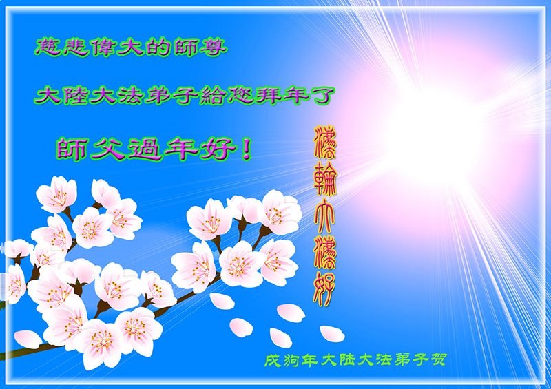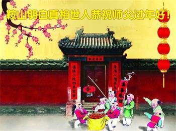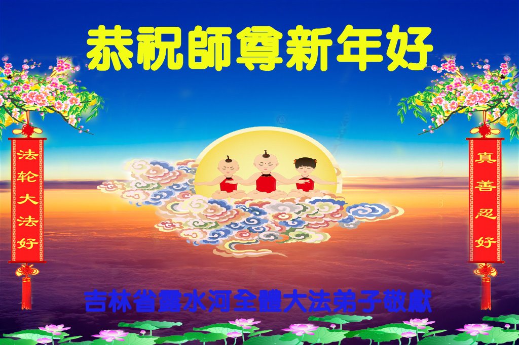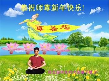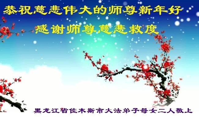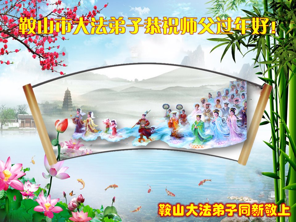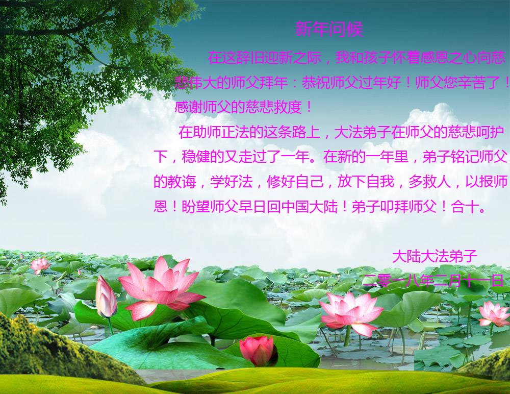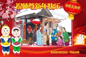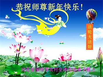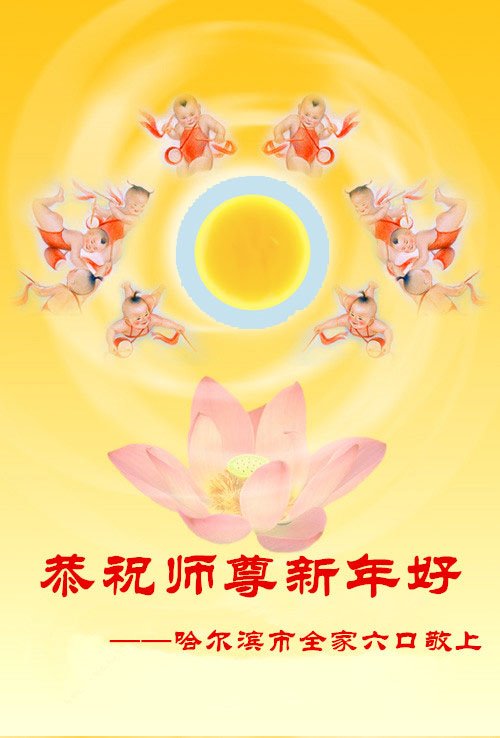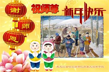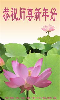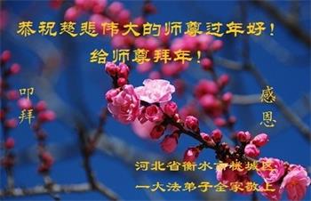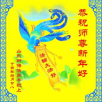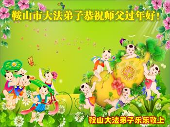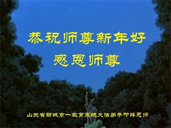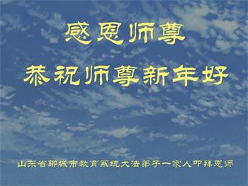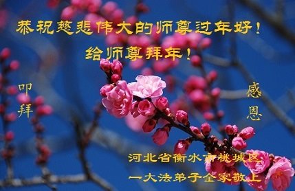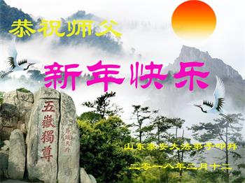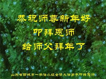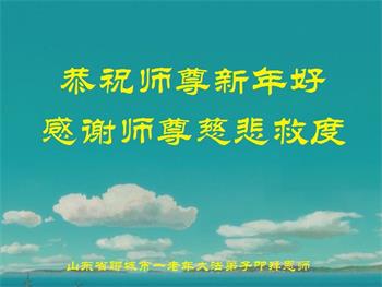 慈悲伟大的师父好!在这天地更新、万物复苏的时候,我们青岛东部的一资料点的全体老少大法弟子及家人给您拜年!恭祝师父新年快乐!借此,我们把满怀对慈悲伟大的师父的思念和感恩之心凝成一句话:学好法,修好心,不懈怠,多救人,路走正,报师恩,证实法!