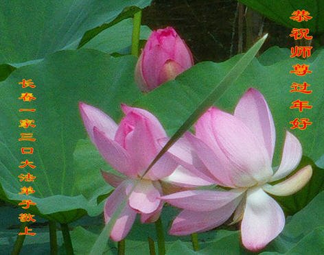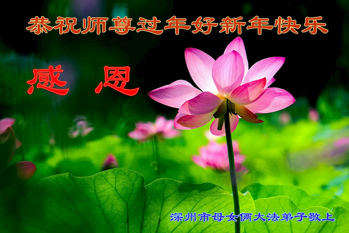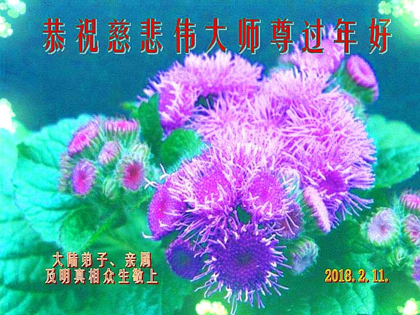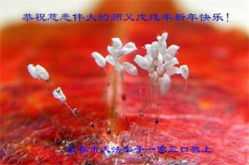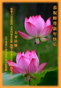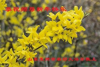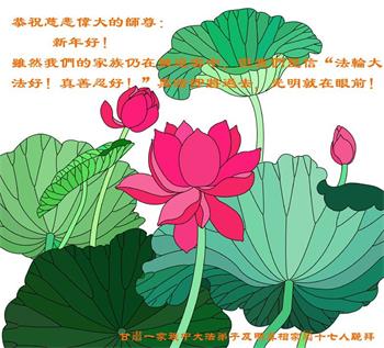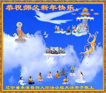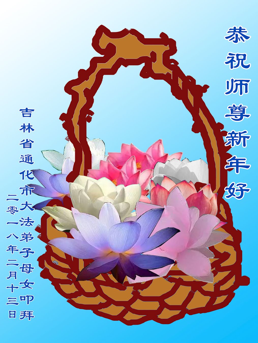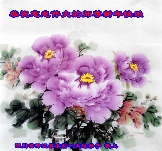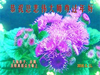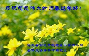 辽宁省抚顺市大法弟子说:“我们是老年大法弟子,我们在家里开了一朵小花,在师父慈悲的呵护,一路走过十多年了,这朵小花在风雨中茁壮成长着,在这严寒即将过去,春天即将来临之际,我们给师父拜年了!师父过年好!师父您辛苦了!”
