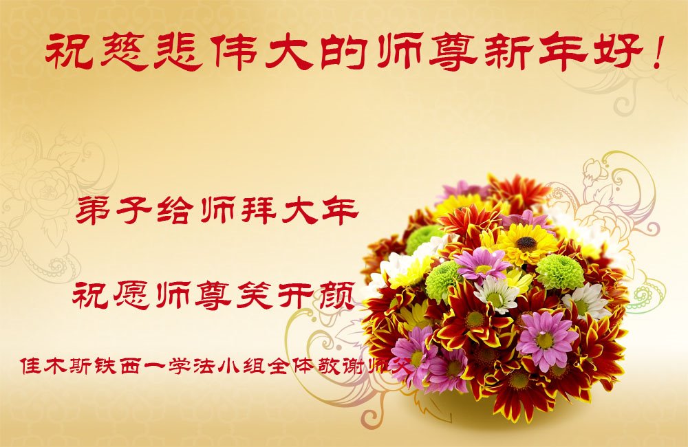 敬爱的师尊您好!我们资料点及学法小组全体弟子敬祝师尊过年好!请师尊放心,弟子们谨遵师尊教诲做好三件事,圆满随师还。