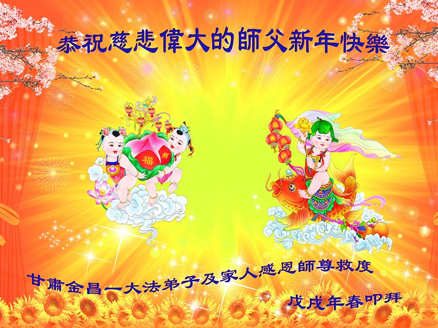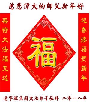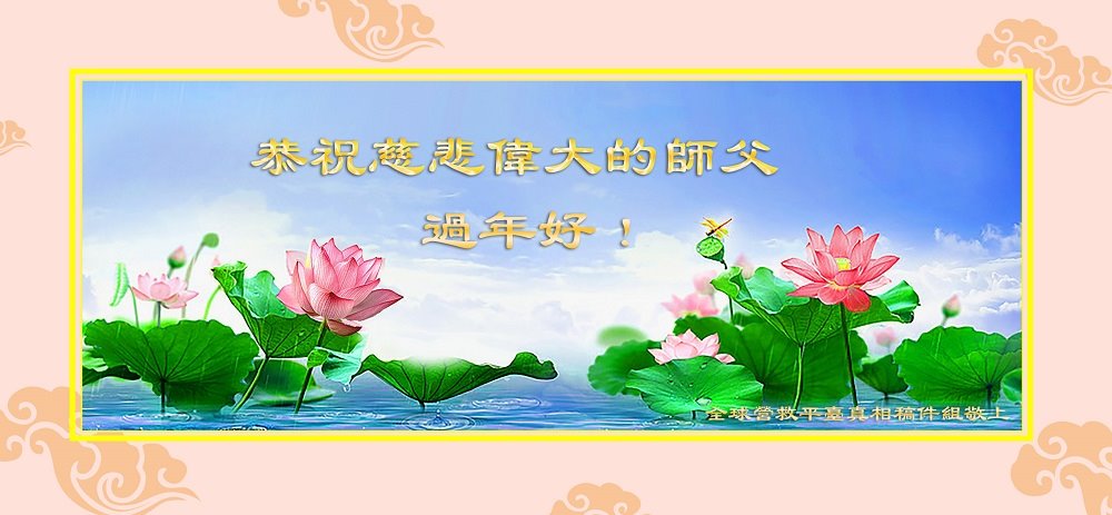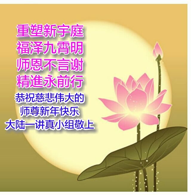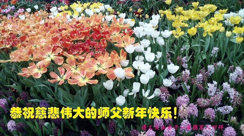 中国的大年即将来临,弟子多么渴望师父能回大陆和您的弟子、得救的众生一起共度佳节!我觉的普天同庆的日子不远了!师父您二十几年来的心血灌注着每一位弟子的心田,弟子明白了人生的意义,身、心得到净化,同时知道救度众生是我们的使命,弟子不会让您失望,弟子会在做好三件事的同时修好自己,不辜负师父的慈悲苦度。祝愿师父戊戌年快乐!