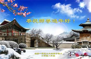 青岛东部的一资料点的大法弟子恭祝师父新年快乐!他们说:“我们把满怀对慈悲伟大的师父的思念和感恩之心凝成一句话:学好法,修好心,不懈怠,多救人,路走正,证实法,报师恩!”