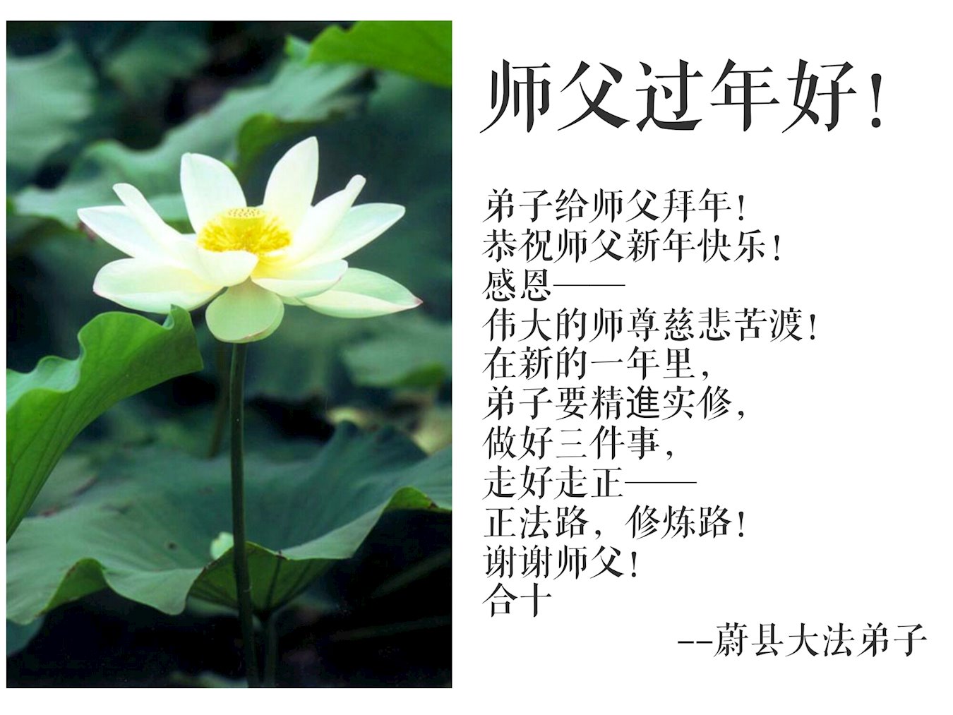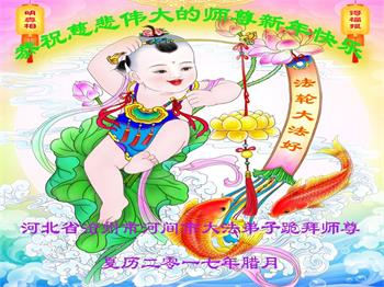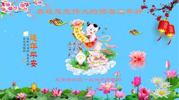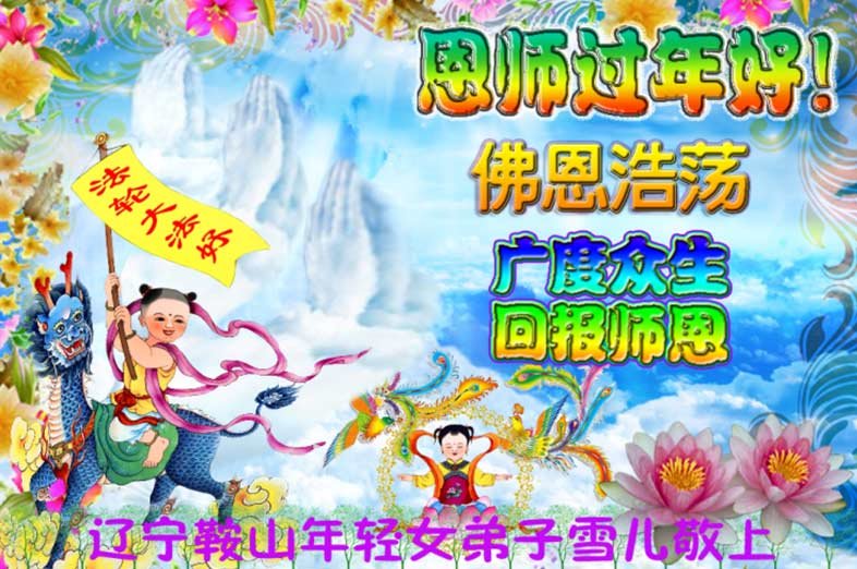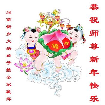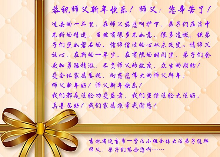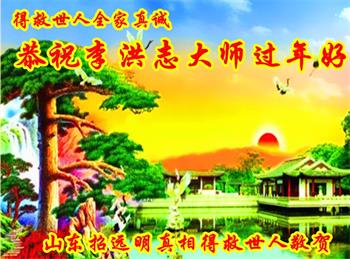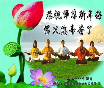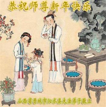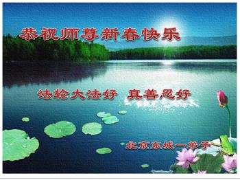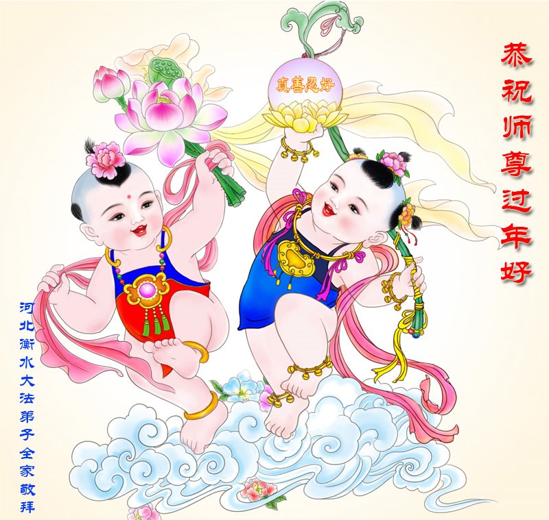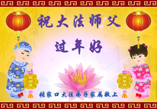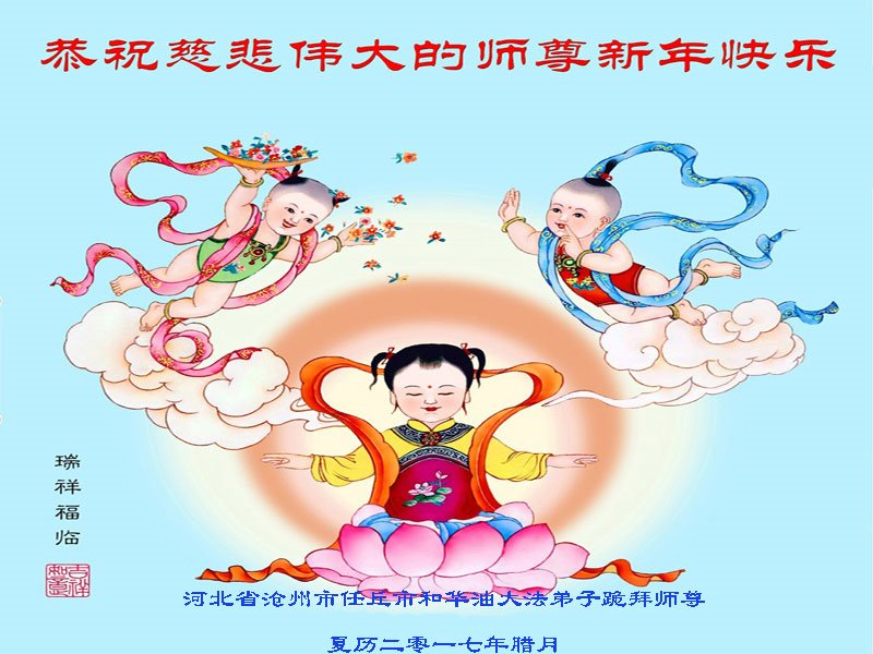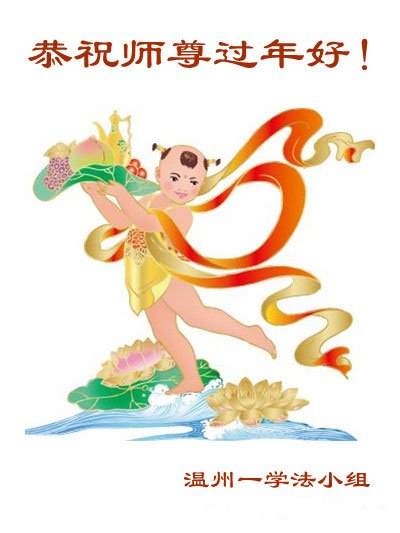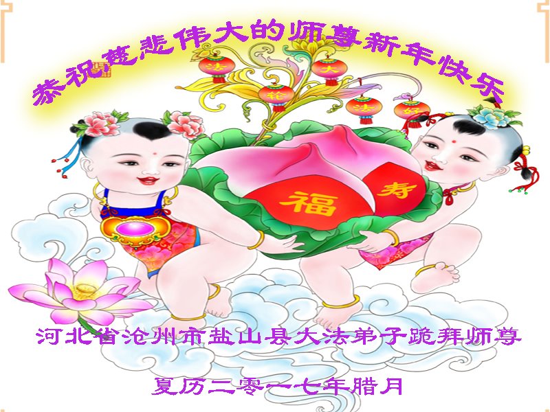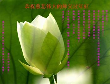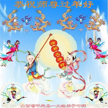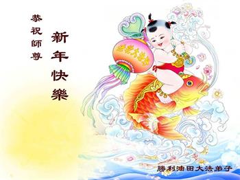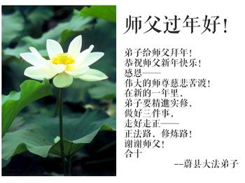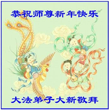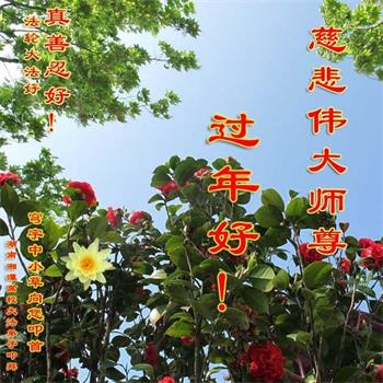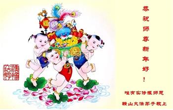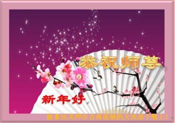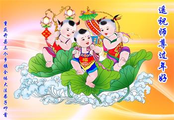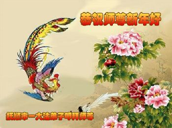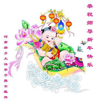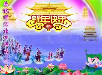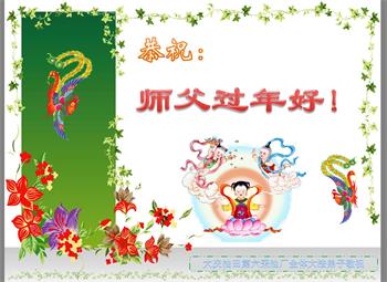 ![]() 图4:大法小弟子恭敬合十,向师尊拜年。 |