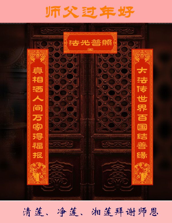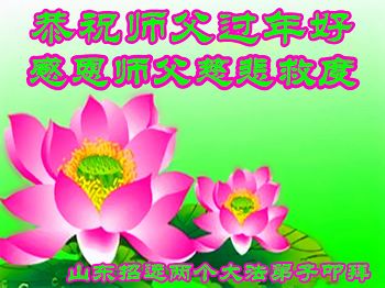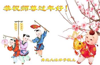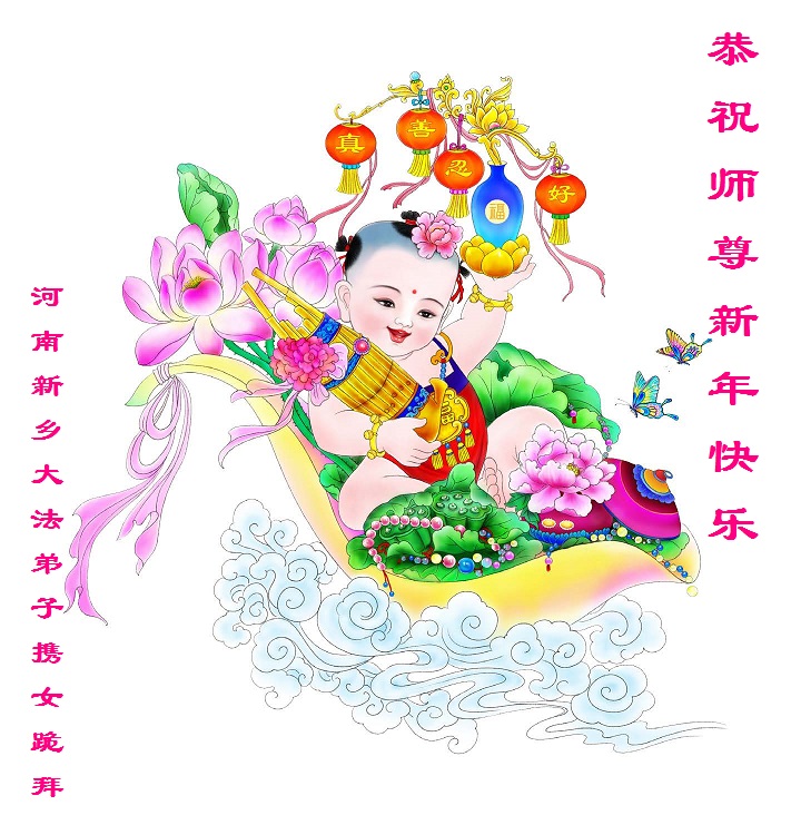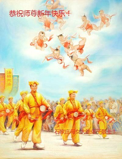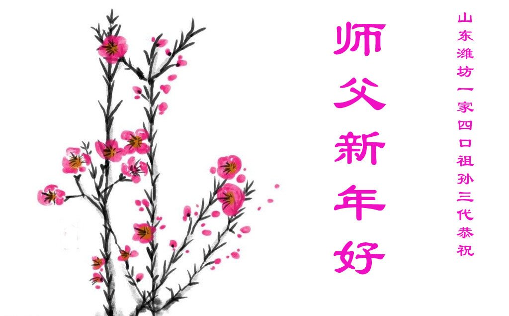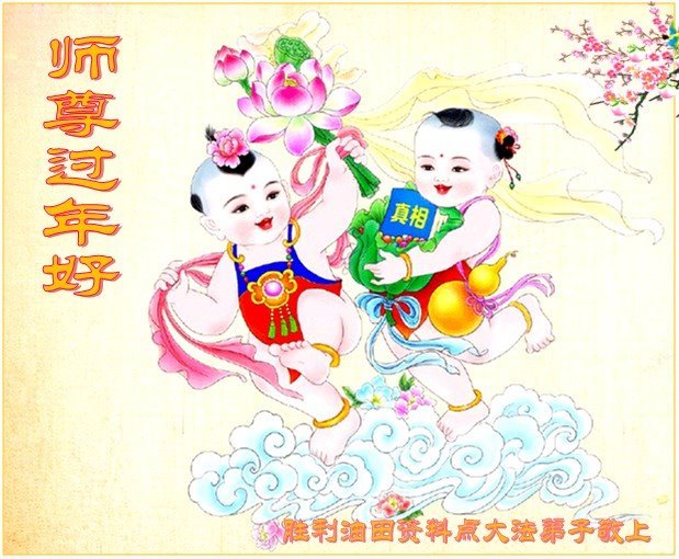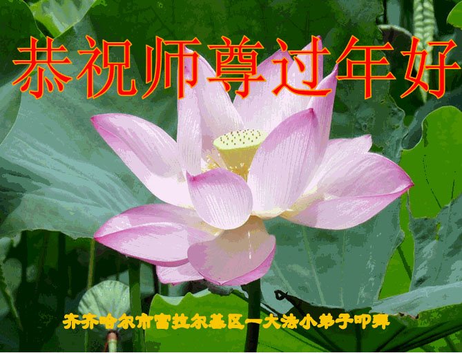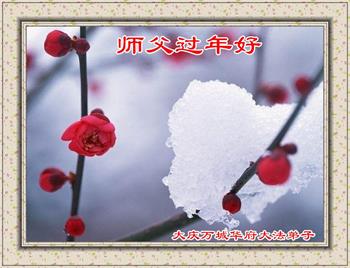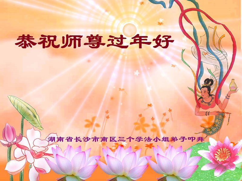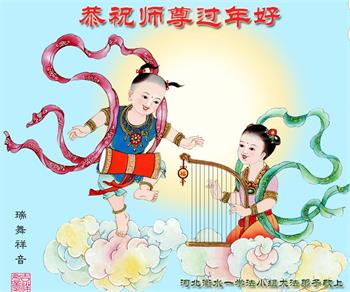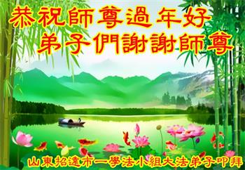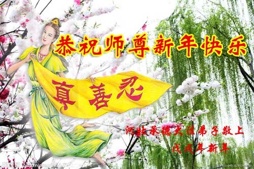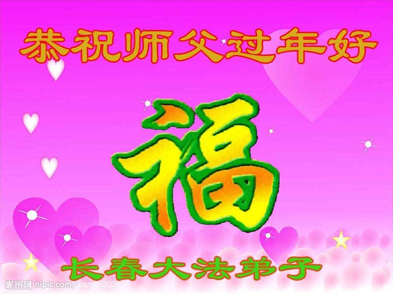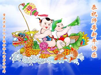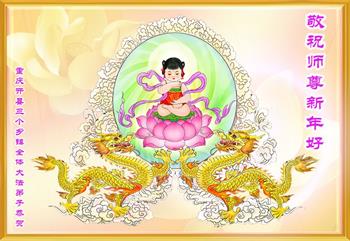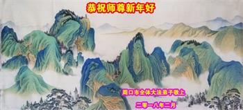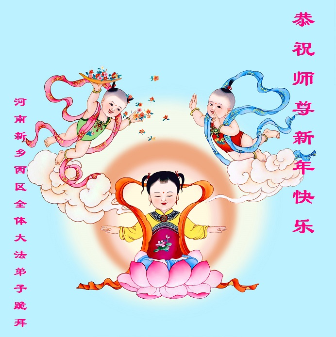 ![]() 图4:大法小弟子恭敬合十,向师尊拜年。 |