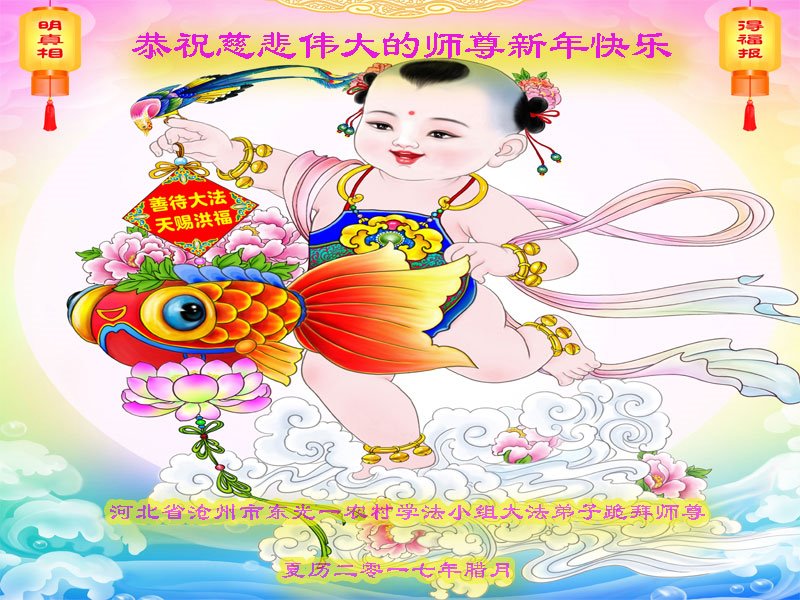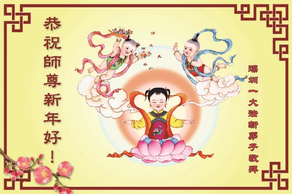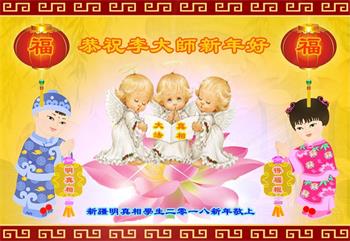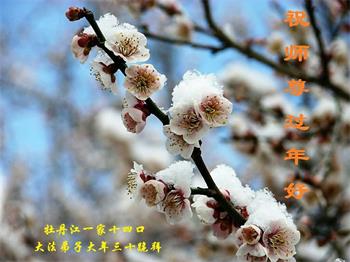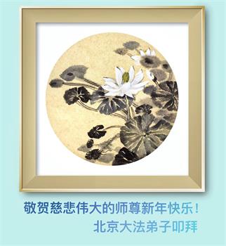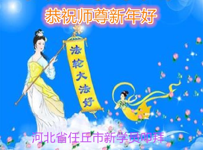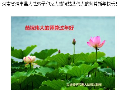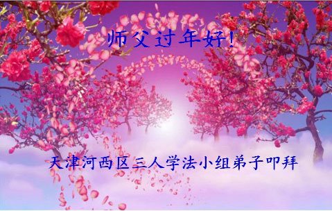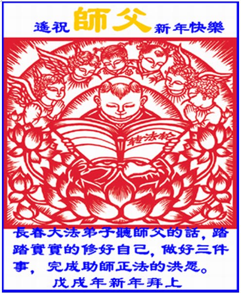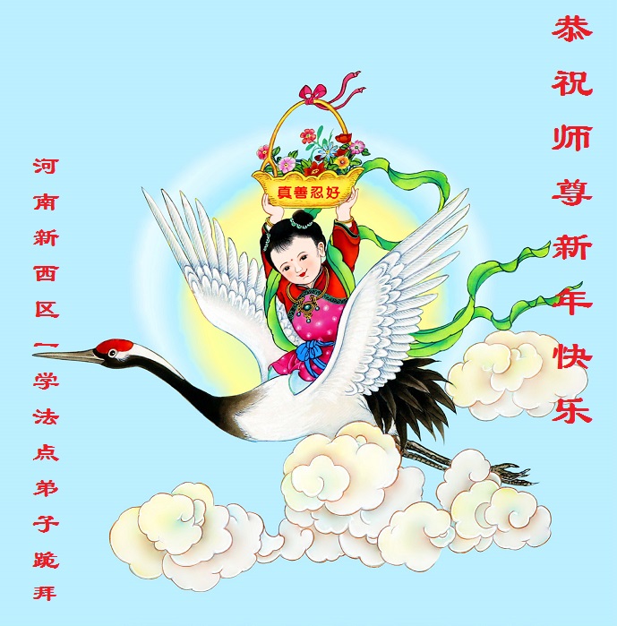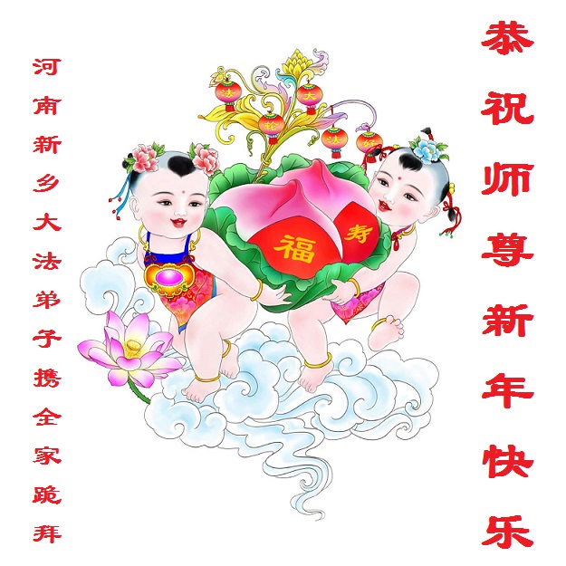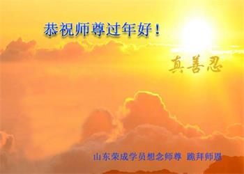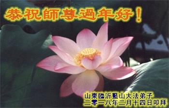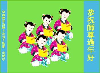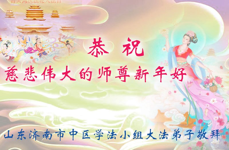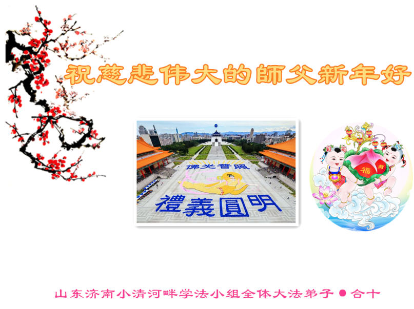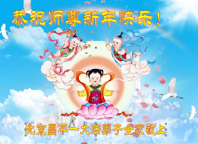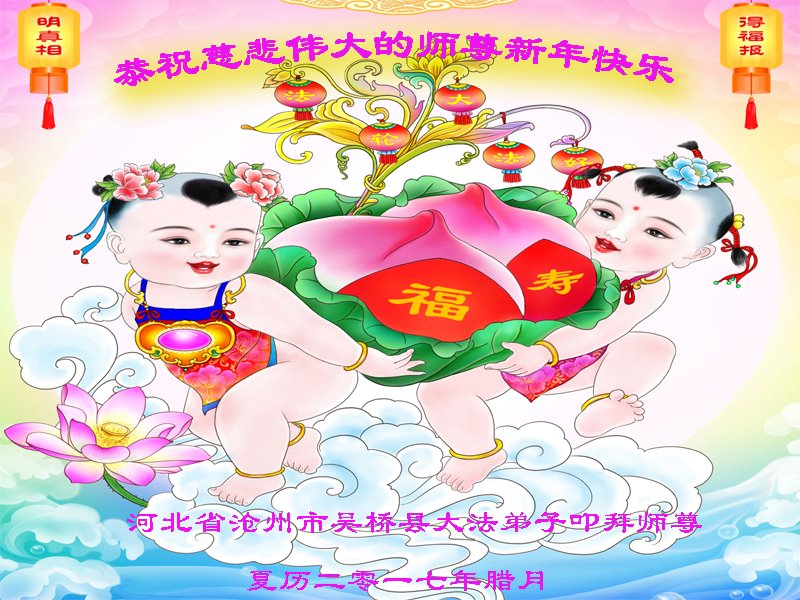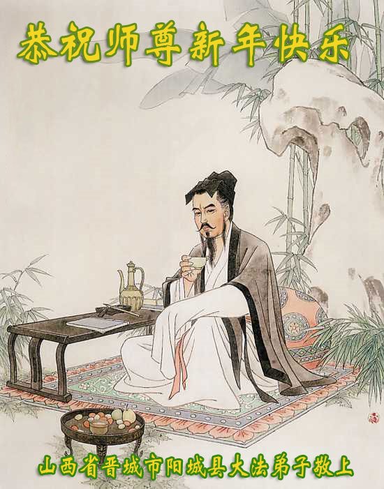 ![]() 图4:大法小弟子恭敬合十,向师尊拜年。 |