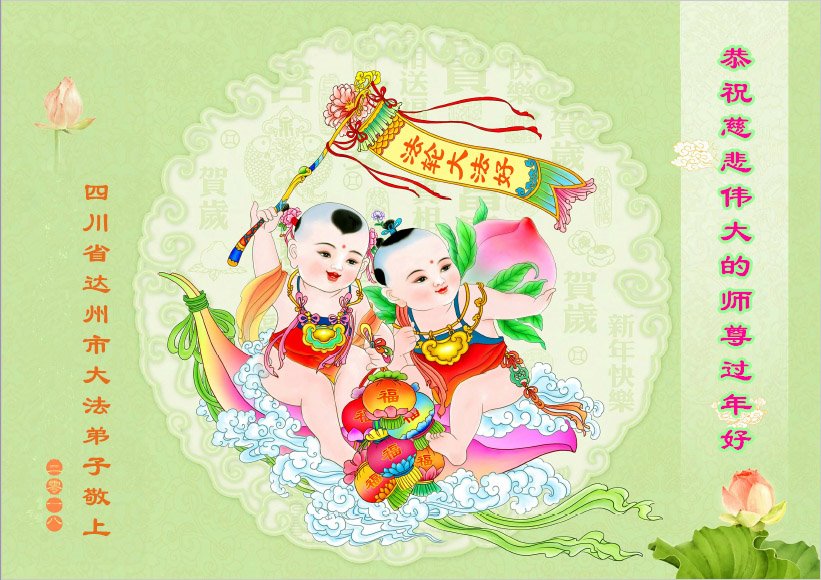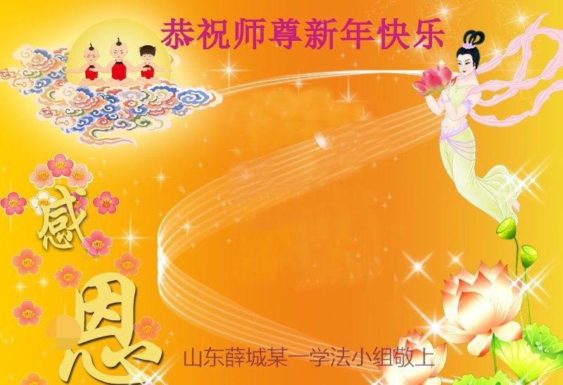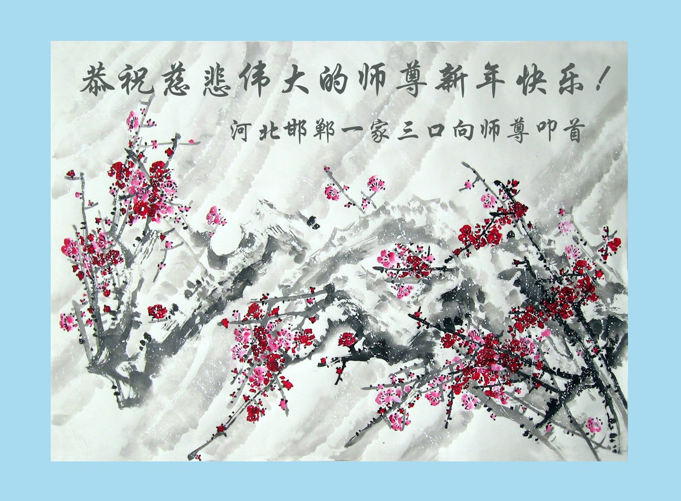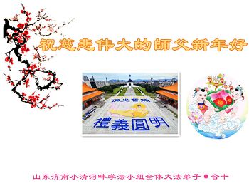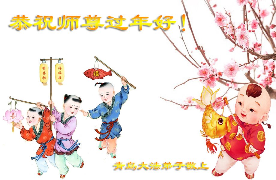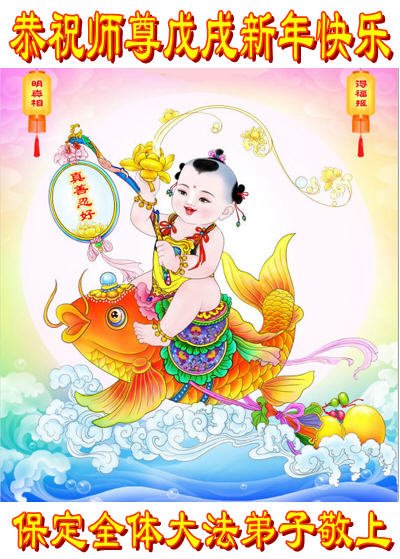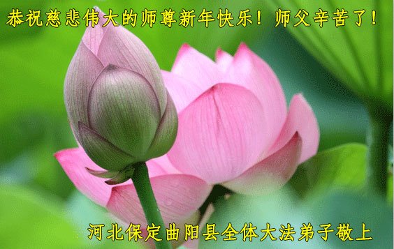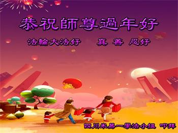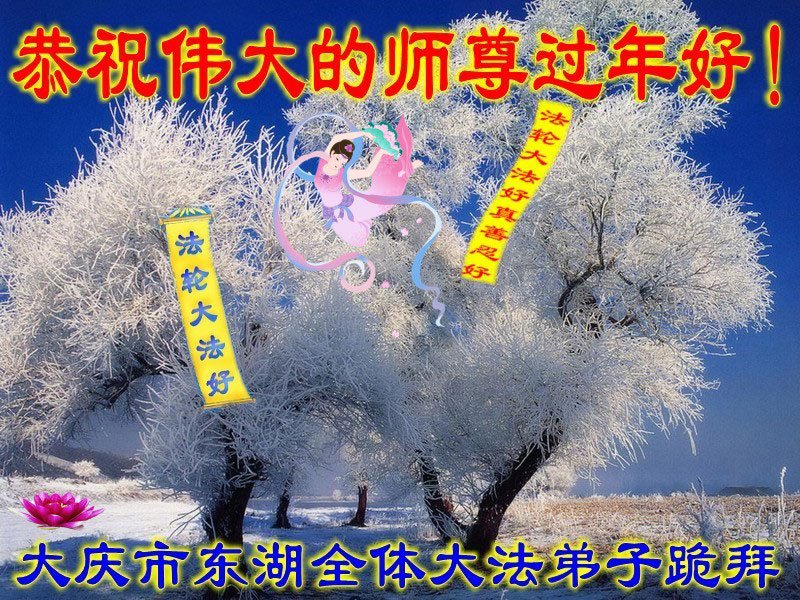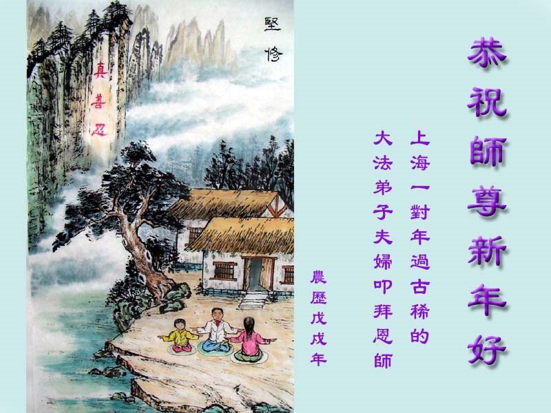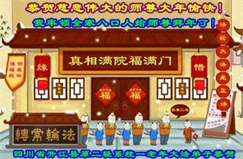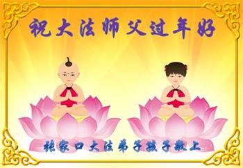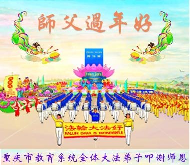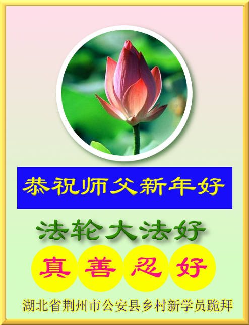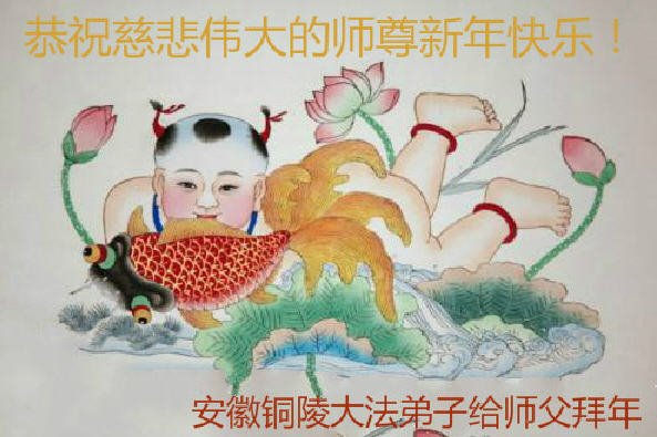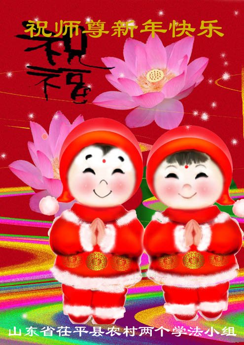![]() 图4:大法小弟子恭敬合十,向师尊拜年。 |