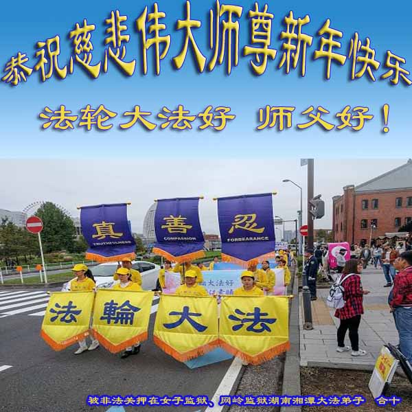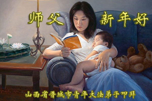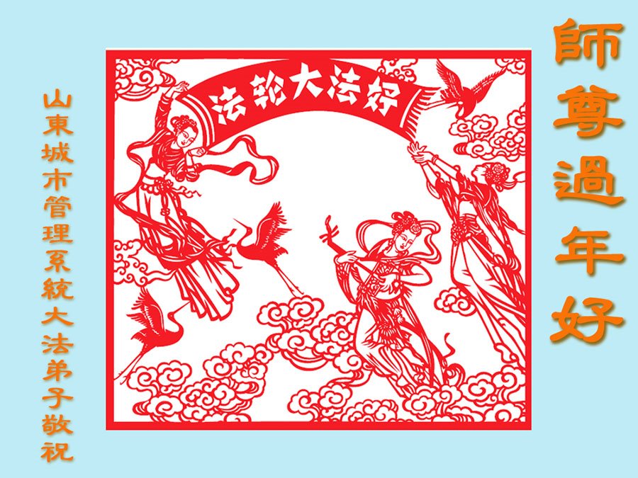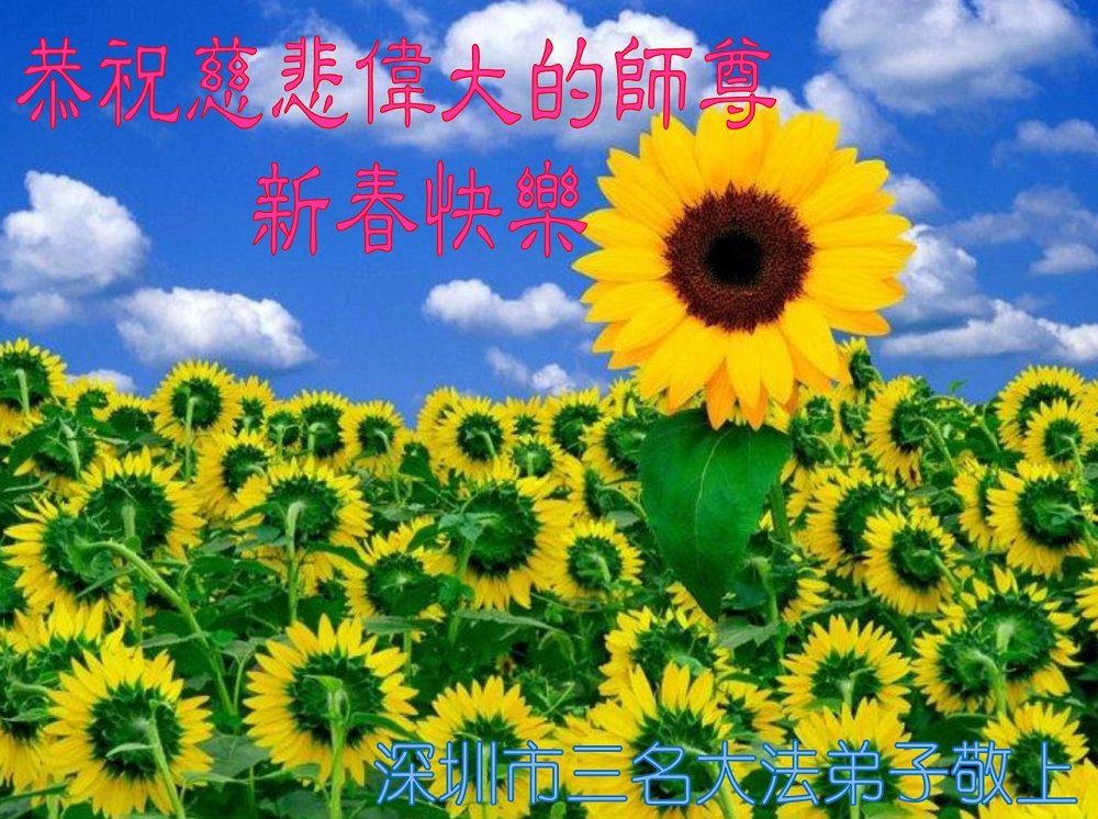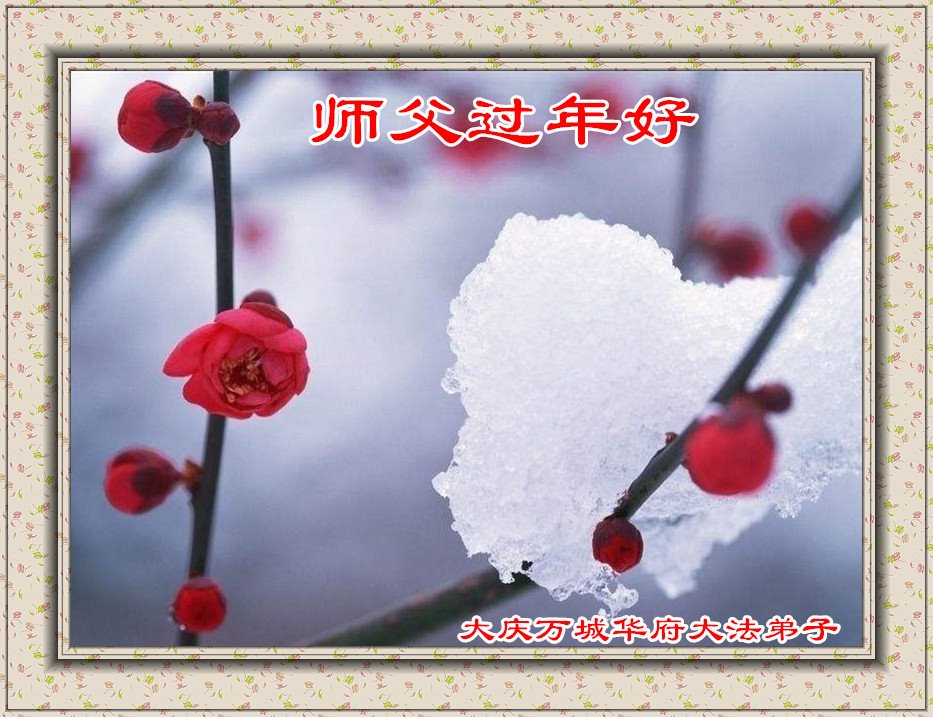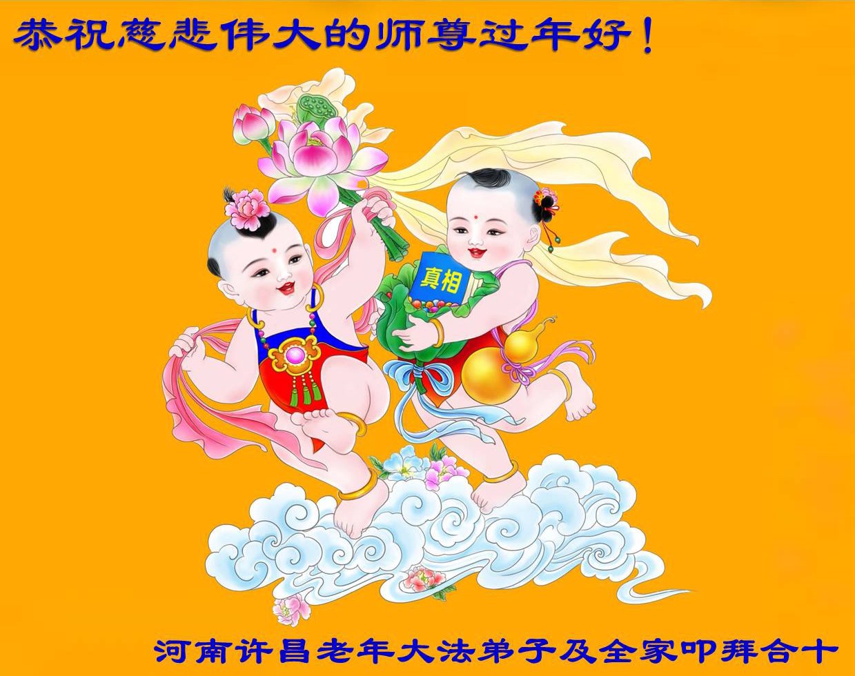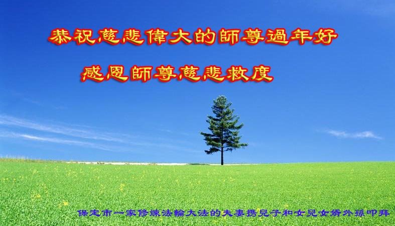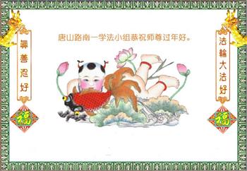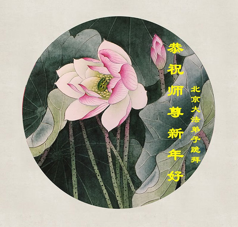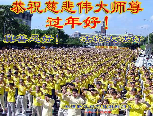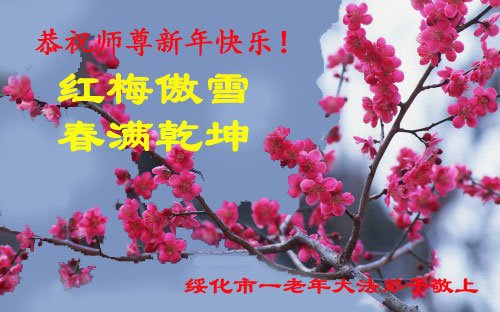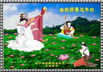 ![]() 图4:大法小弟子恭敬合十,向师尊拜年。 |