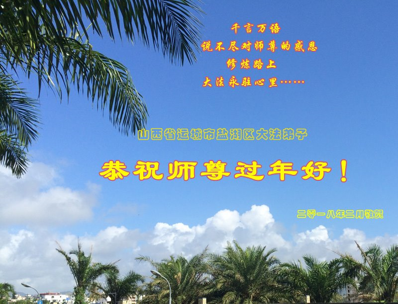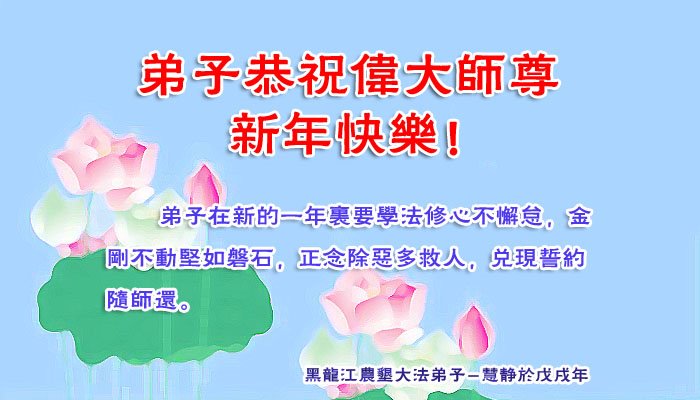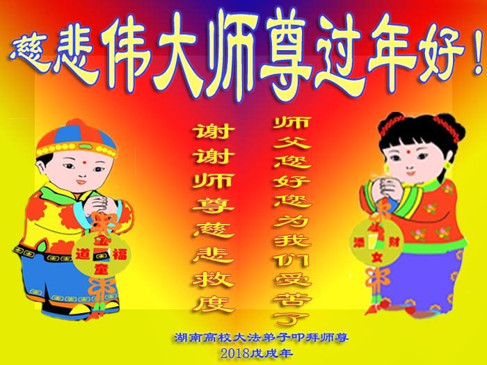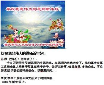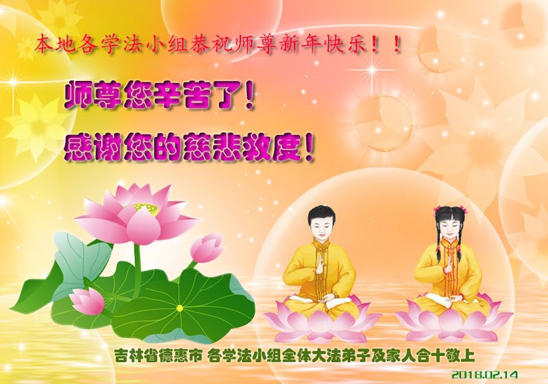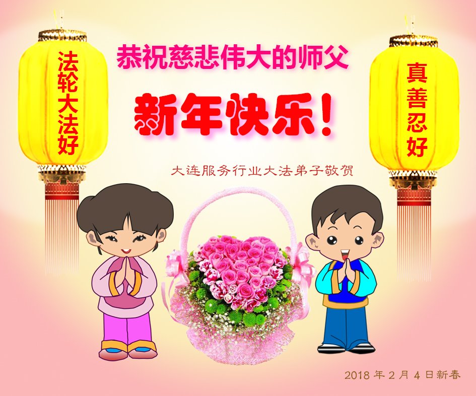 【明慧网二零一八年二月十七日】(明慧网记者综合报道)法轮大法是佛法,李洪志师父将大法修炼在常人社会传出,为各阶层各行业有缘修炼之士提供了一个对社会负责、对人负责,既能正常的生活在社会中尽职尽责,又能修心向善、返本归真之路。在中国新年到来之际,来自各行业的大陆大法弟子恭祝师父新年好!
