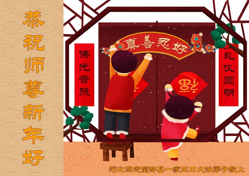 ![]() 图2:香港全体大法弟子敬献给师尊的新年贺卡 |