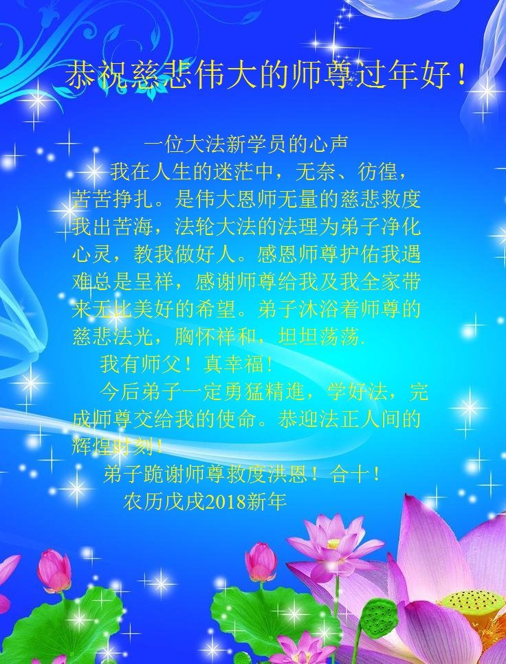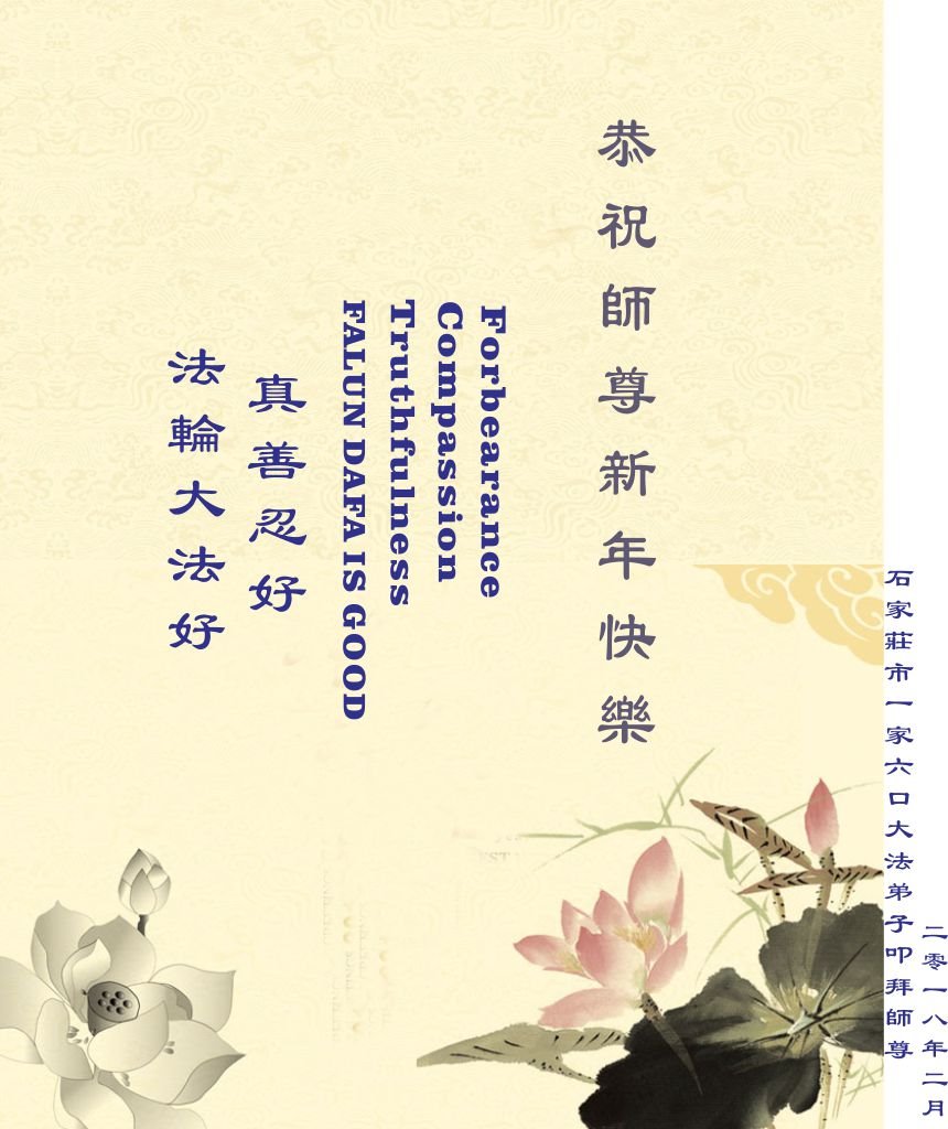 <英文版: http://en.d2s3ombhnov3zf.cloudfront.net/html/articles/2018/2/18/168790.html>来自四十个行业的大陆大法弟子恭祝师父新年好
