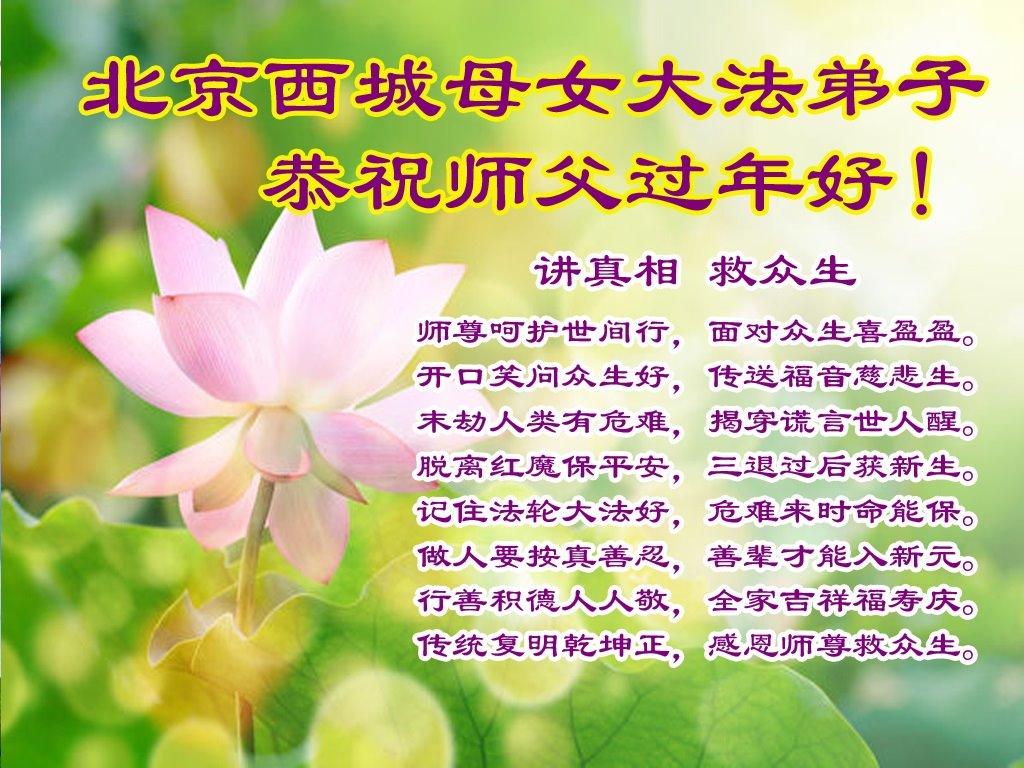 正值中国新年,陈小姐向法轮功创始人拜年,“祝福李洪志先生早一些可以回到中国传扬佛法。祝愿新年快乐!”