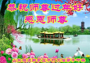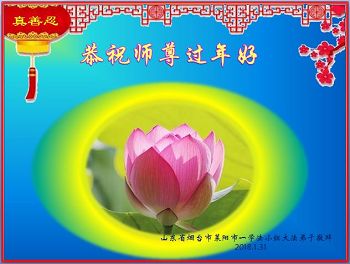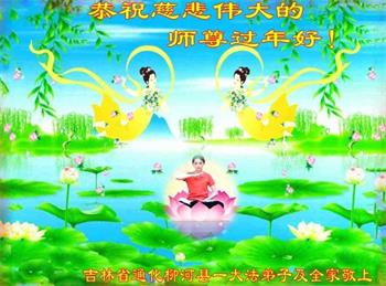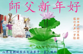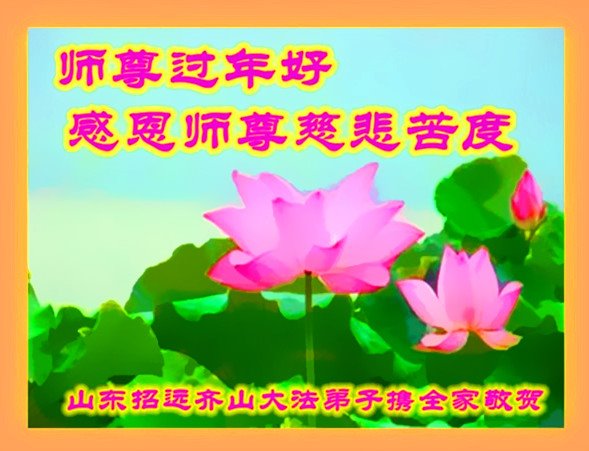 平原县一大法弟子代表全家向慈悲伟大的师父拜年!恭祝伟大的师父新年好!新年快乐!弟子不辜负师父的慈悲苦度,学好法,修好自己,做好三件事,多救人,跟师父回家。感恩慈悲伟大师父的苦心救度!谢谢师父!叩拜师父!跪拜师父!合十