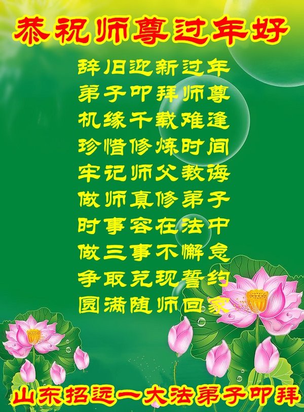 在新的一年来临之际,弟子们向师尊拜年:师父新年快乐!师父您辛苦了!弟子们怀着感恩的心叩谢师尊!