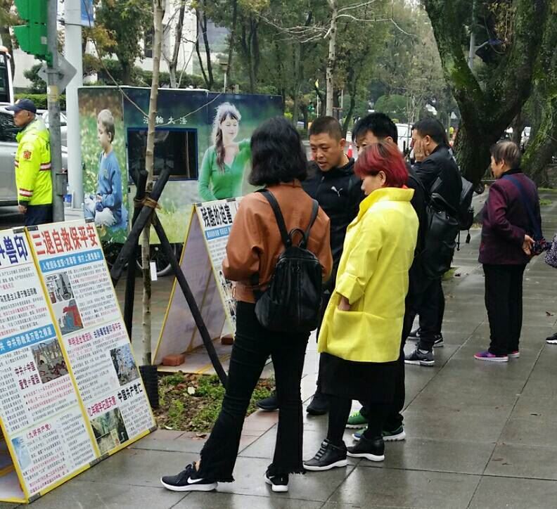 当天还有一家自天津来的中国游客,虽然赶行程,但很友善地与学员打招呼,他们隔天就要离开台湾了,这趟台湾行更清楚了法轮功的确与政治无关。当初“天津事件”(四二五上访的起因)的真实缘由他们知道了,邪*党-栽赃诬陷法轮功的各种骗局也看到了……学员进一步解说:法轮功学员在和平时期修炼,在被残酷迫害时期还是修炼,这么多年就是实践了正信真理的追寻,就是坚持修炼。他们立即点头表示赞同。接着学员帮父女退出了中共相关组织,他们说回去会跟亲人分享这些所见所闻的。
