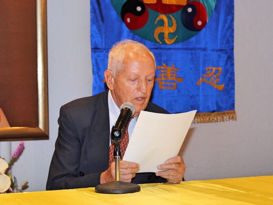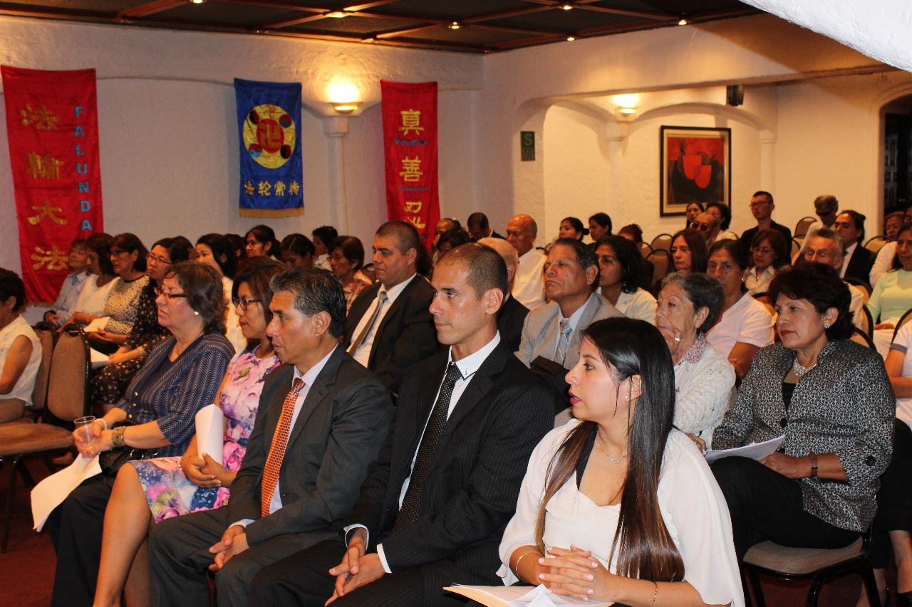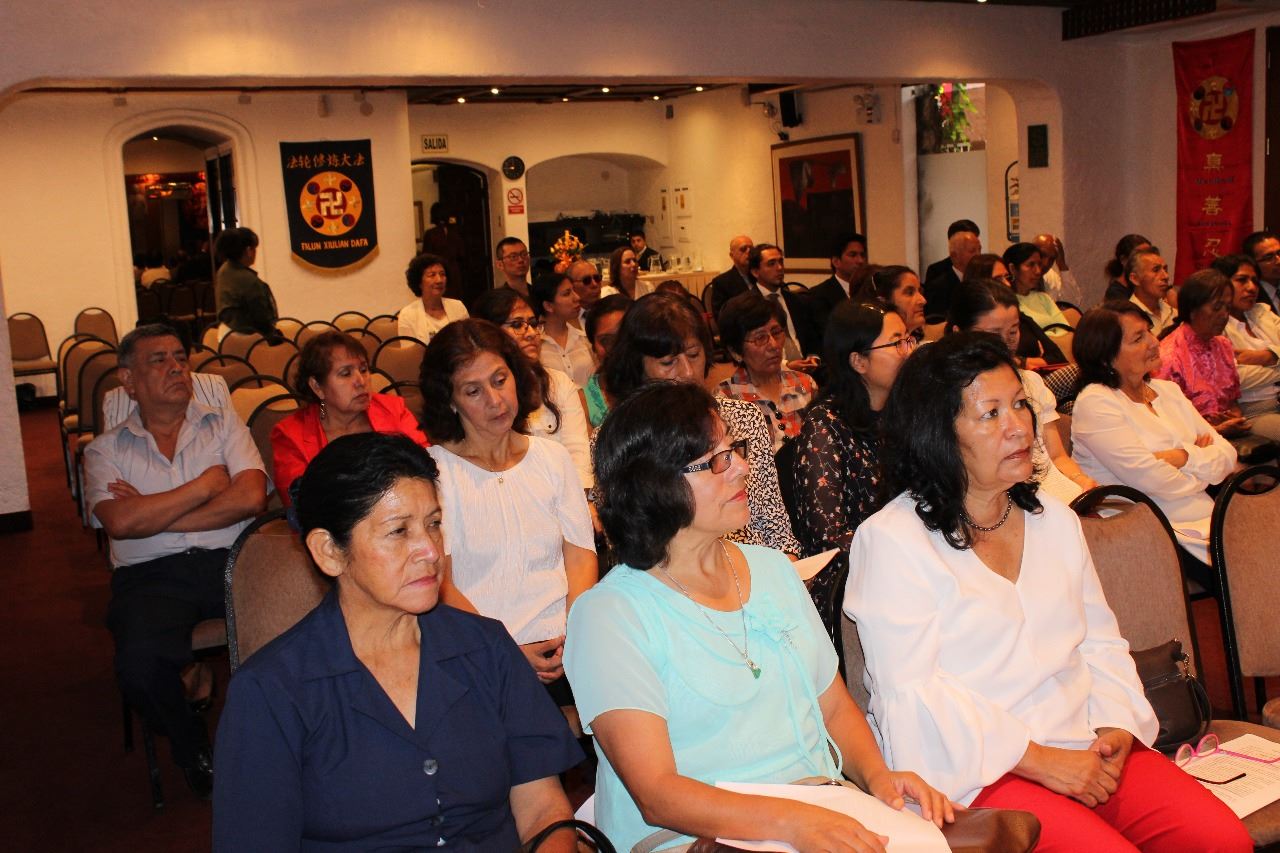 西人学员赦沙·伊玛纳(Cesar Anibal)是二零零七年开始修炼大法的,法会上他交流了自己修炼后的点滴体会:十年来每周末他都坚持去炼功点炼功,因为自己退休后有较多的时间,他开始去秘鲁教育部和部长助理及相关人员讲真相,介绍法轮功祛病健身的功效,为此教育部介绍了几家学校,他跟校长联系之后,当地大法学员先后多次到学校教几百名人次的学生五套功法,获得学生家长和老师的喜爱,他们对法轮功教导的真善忍印象深刻。