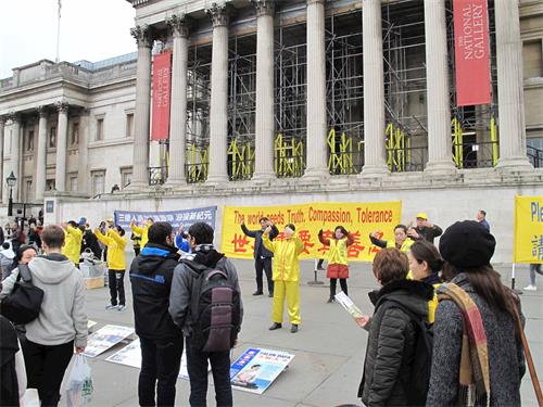 ![]() 图1~4:英国法轮功学员在伦敦特拉法加广场(鸽子广场)展示法轮功功法、讲真相和征签反迫害,庆祝三亿中国人退出中共 |