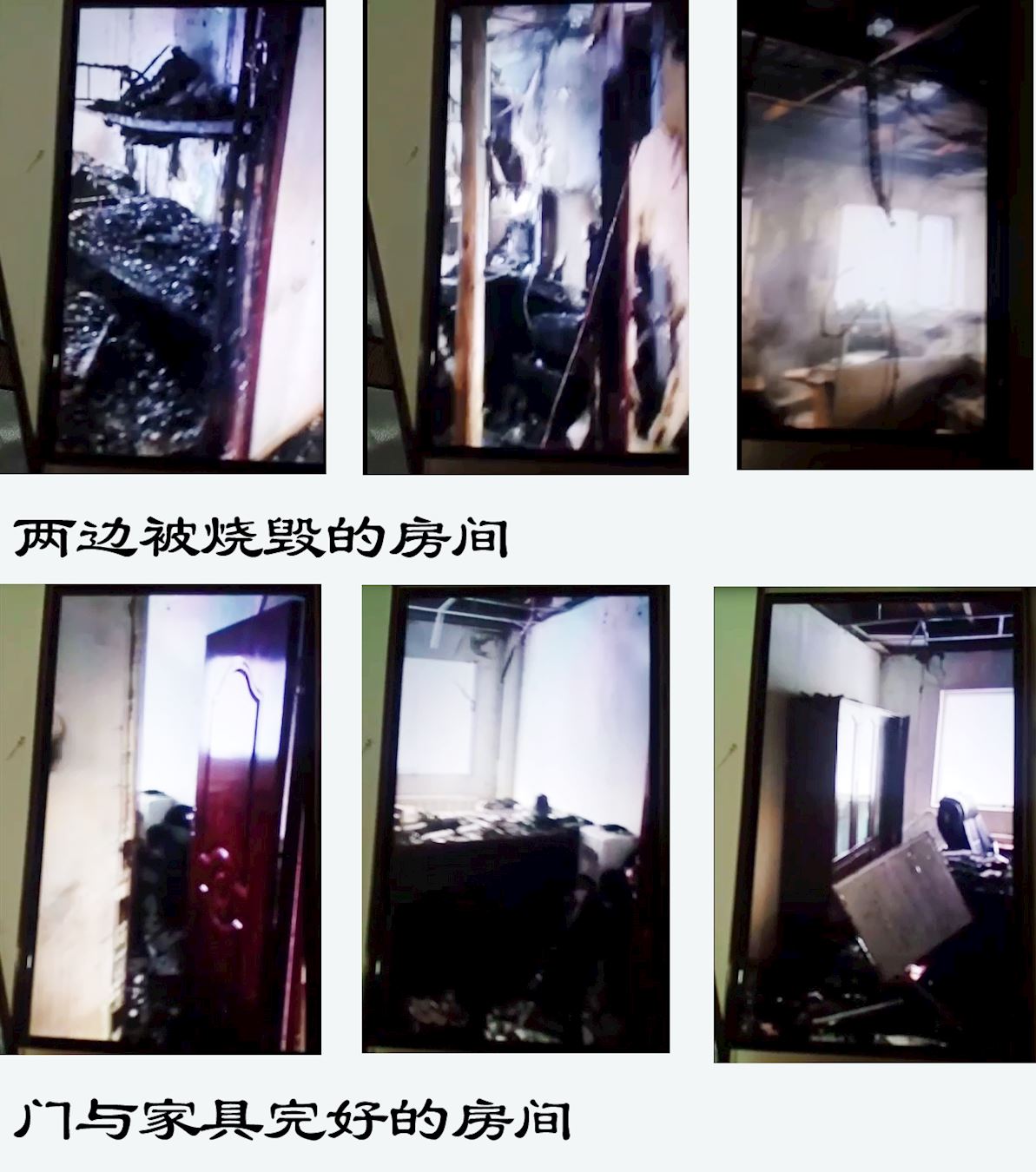 这起火灾是电火引起的,发生在办公楼的第三层,整个一层楼烧个精光,也殃及了二楼。如果你沿着一楼楼梯进入二楼,会看见一间间屋子连门都烧的一点不剩,现场一片狼藉。继续往里走,你会发现有一间屋子,门是木门,却安然无恙,甚至都没有被熏黑,屋子里面的家具,桌、椅、柜和窗户几乎都完好无损,沿着走廊继续往里走,依然都是被大火烧毁的一间间办公室的凄惨景象。