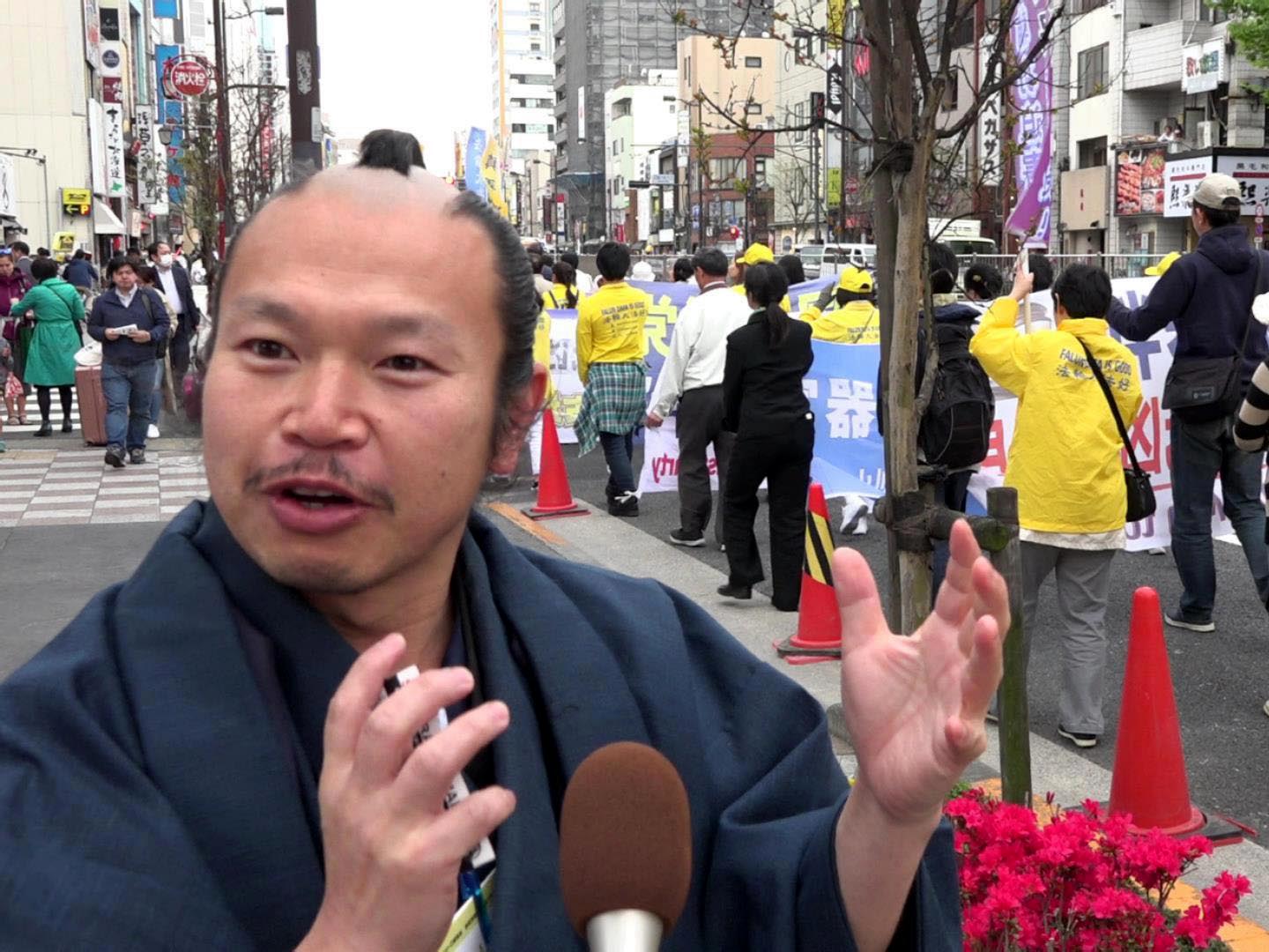 身着和服梳着发髻的奈知先生非常热爱传统文化。他是第一次看到法轮功的游行才对法轮功有所了解的。对于三亿人退!党!这件事情,他说:“(法轮功学员)可以看清什么是好什么是坏,他们以好的为目标,集中起来来做事情,我感受到了他们的这种急切的愿望。希望你们能加油,这是非常棒的事情!”