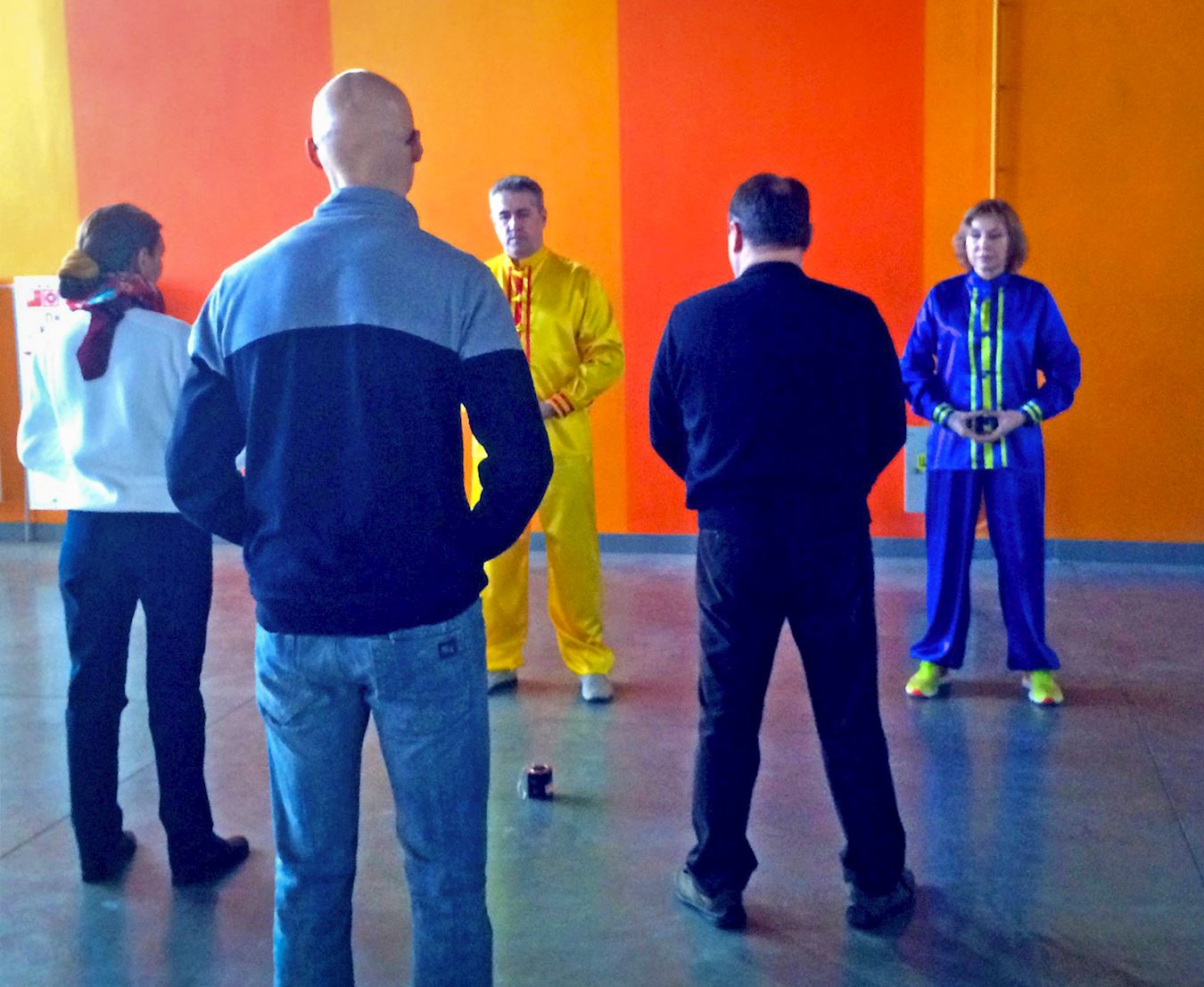 法轮功学员们现场教功,功法动作简单易学,很多民众现场尝试后感到力量充沛、神清气爽,非常高兴能在此了解关于法轮功的信息。
