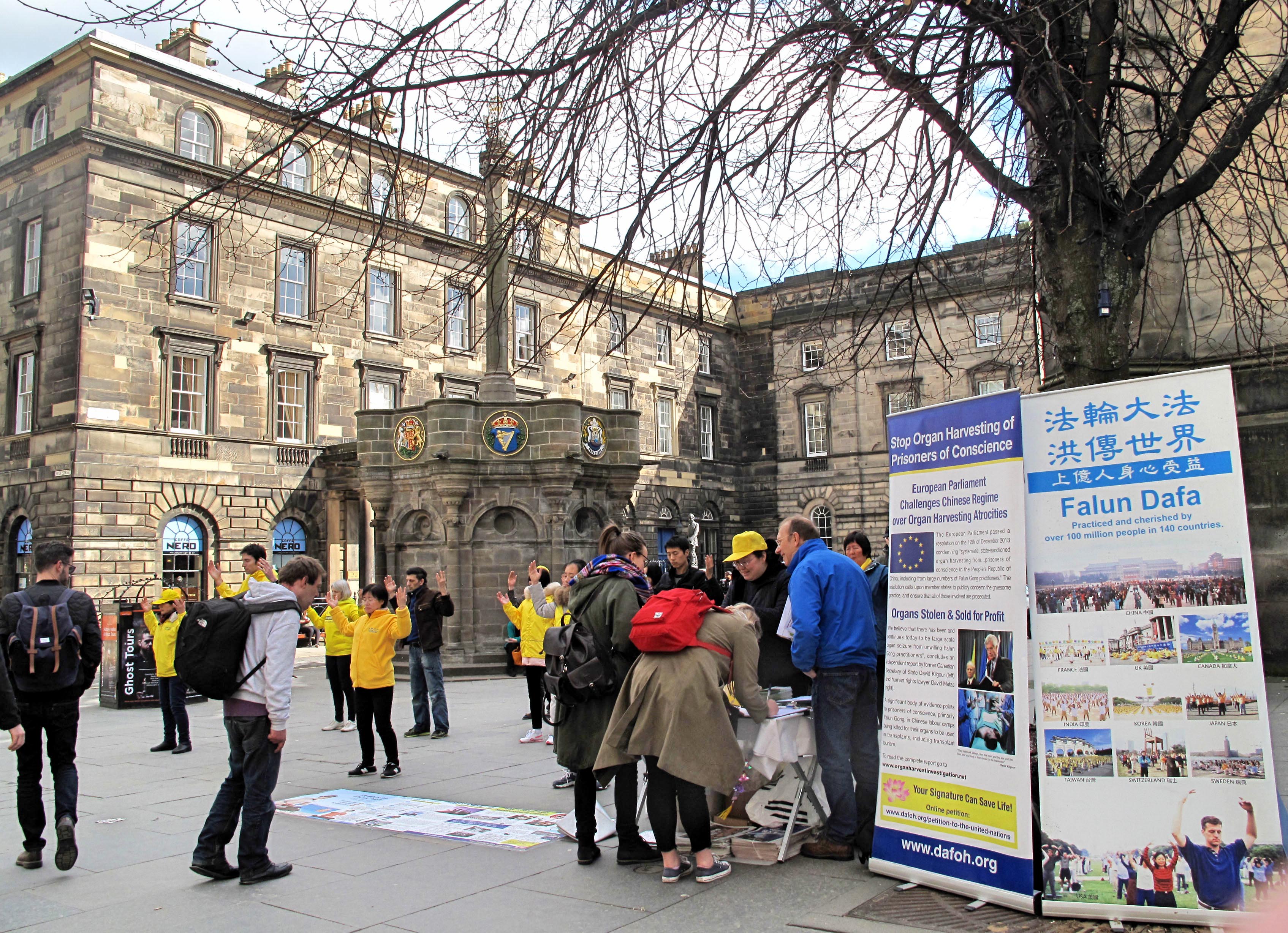 这次活动的地点是在著名的皇家大道(Royal Mile)爱丁堡市政府对面与王子大街(Prince Street)圣杰姆斯广场(St James Square)两个地点同时举行讲真相活动,希望让更多民众有机会了解法轮功是什么、法轮大法修炼者是什么样的人,并认清中共邪恶本质,共同制止中共迫害法轮功、迫害正信的反人类行径,获得当地民众的支持。