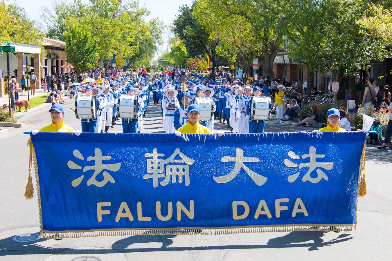 法轮功的队伍经过主席台时,主持人说:“现在来的队伍是法轮大法天国乐团,每个团员都修炼法轮大法。乐团的宗旨是展现法轮大法的美好。法轮大法是基于真、善、忍原则的自我提升的修炼,让我们欢迎法轮大法天国乐团。”观众报以热烈的掌声和赞叹。
