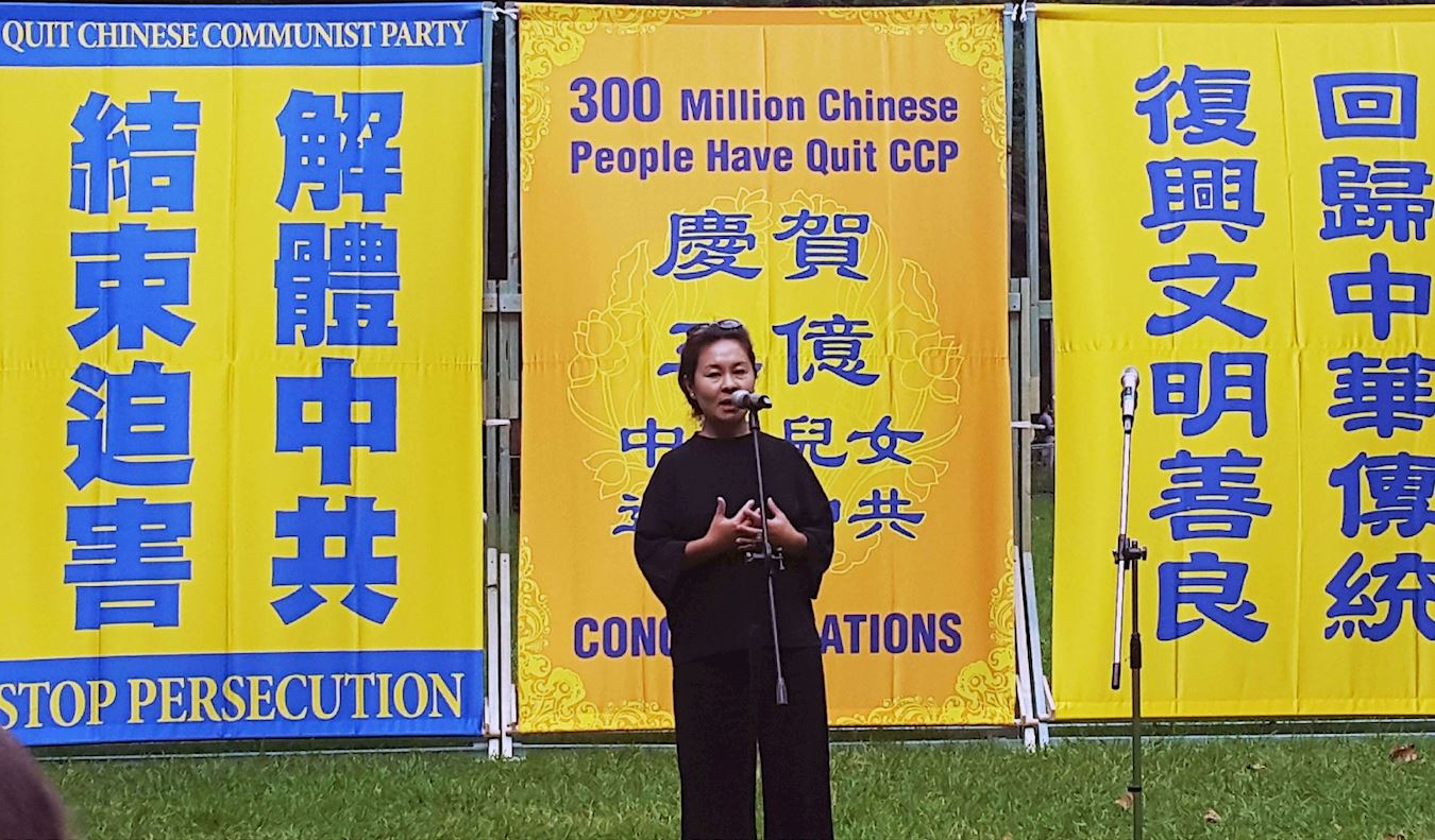 越南澳大利亚社区秘书长阮女士(Thuy Dinh Tran) 首先答谢三亿中国人退出中共的胆量和勇气。她认为共产主义危害人民,不只是在中国,越南也是。她并说:“我听到了许多关于因信仰真、善、忍、处处为别人着想的好人被监禁和杀戮。如此好人应当被社会珍视、鼓励和尊重,使得人性的光辉在其国家发扬光大。今天,面对那个凭借经济发展的幌子始终肆无忌惮迫害那些推崇善良的好人的邪恶政权,我们怎能袖手旁观、熟视无睹?”