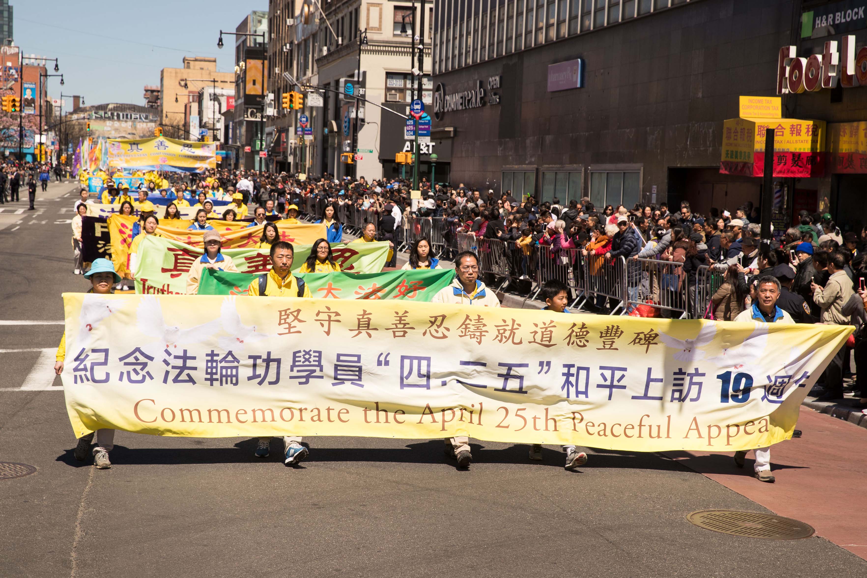 ![]() 图1~10:纪念“四·二五”和平上访十九周年暨声援全球三亿中国人退出中共党、团、队,大纽约地区部分中西方法轮功学员,举办盛大游行。 |