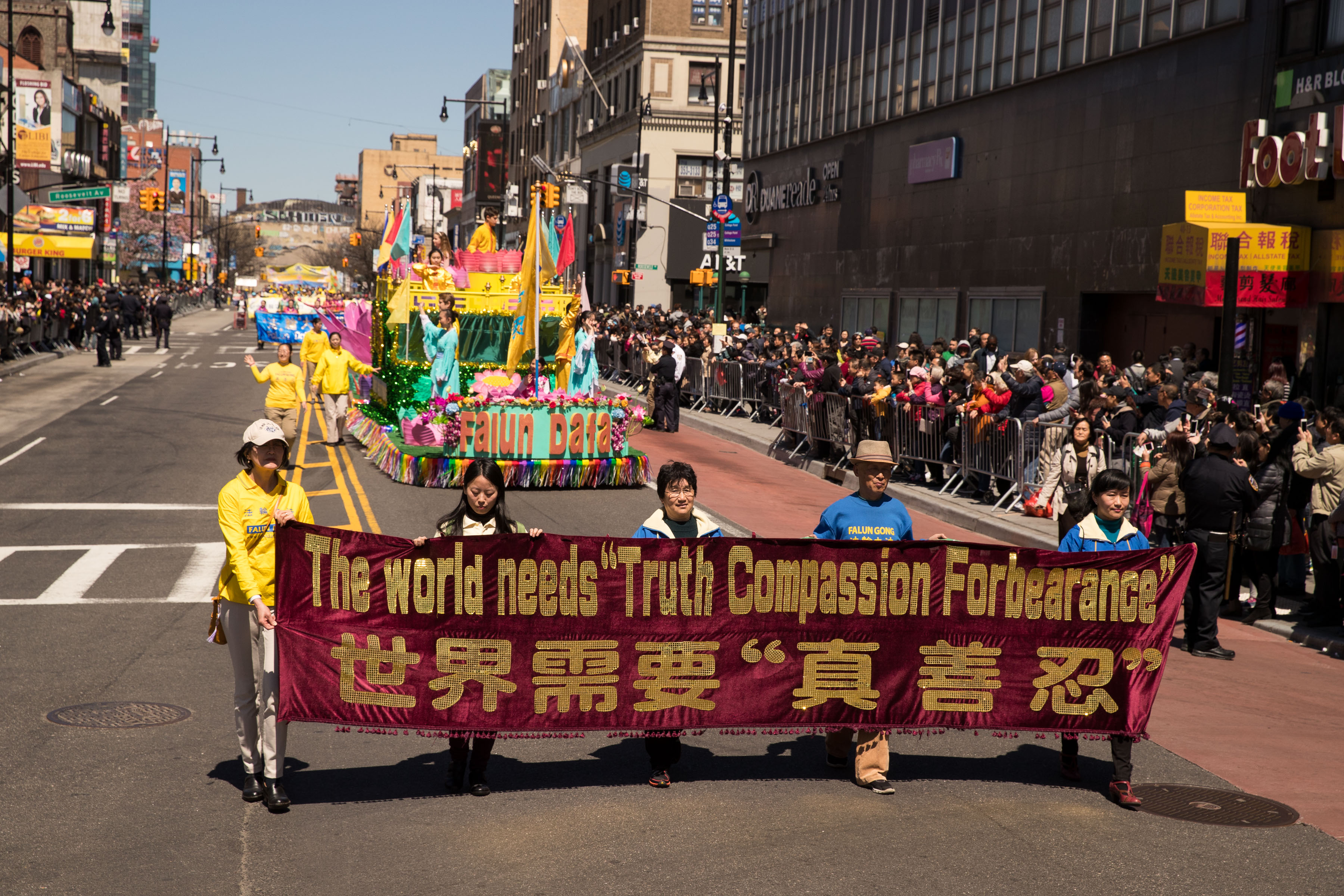 纽约居民莱斯林顿(Leslinton)表达:“每个人都应该有(真、善、忍),是国际价值,非常纯净的价值观,他们(法轮功)是很棒的团体。”