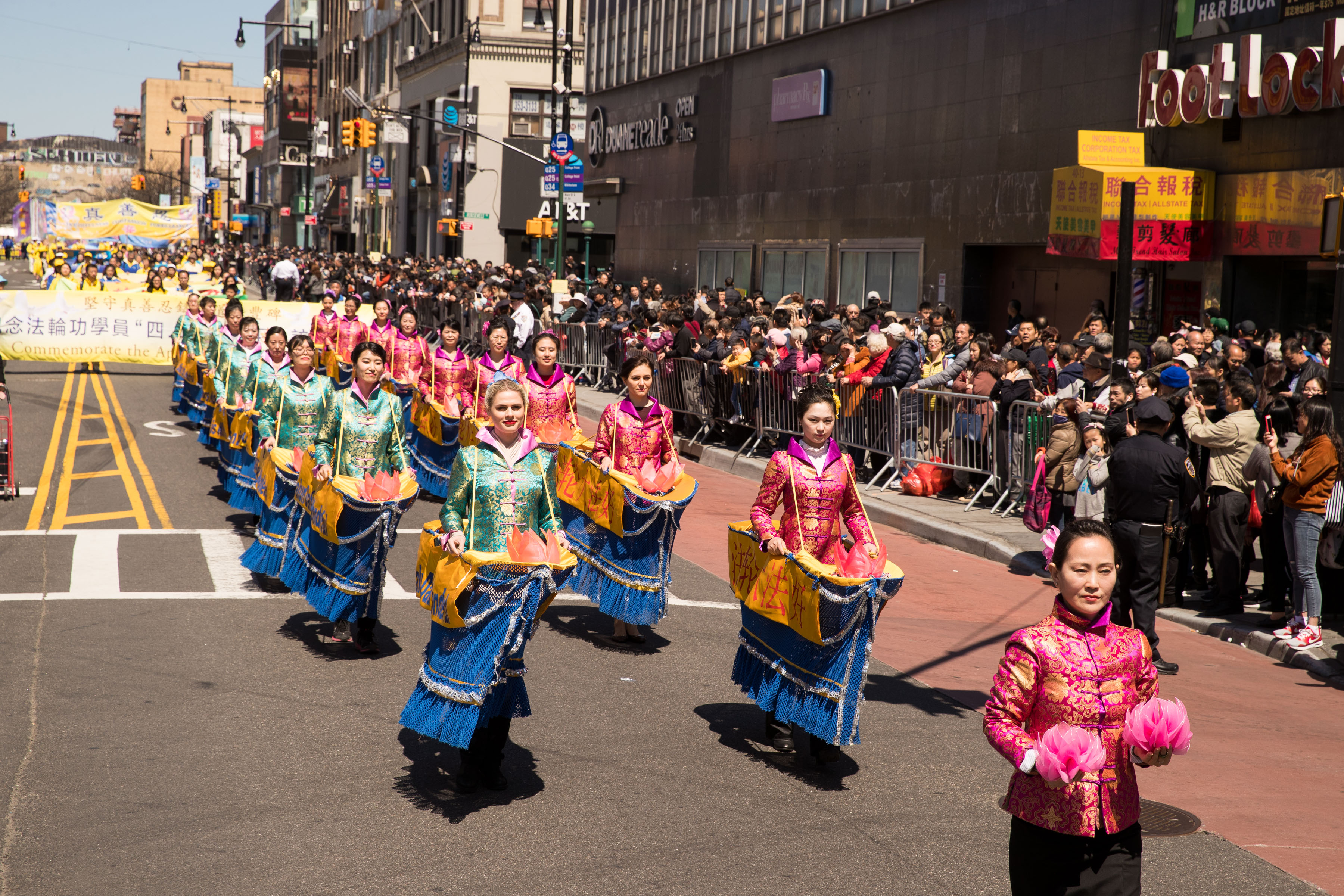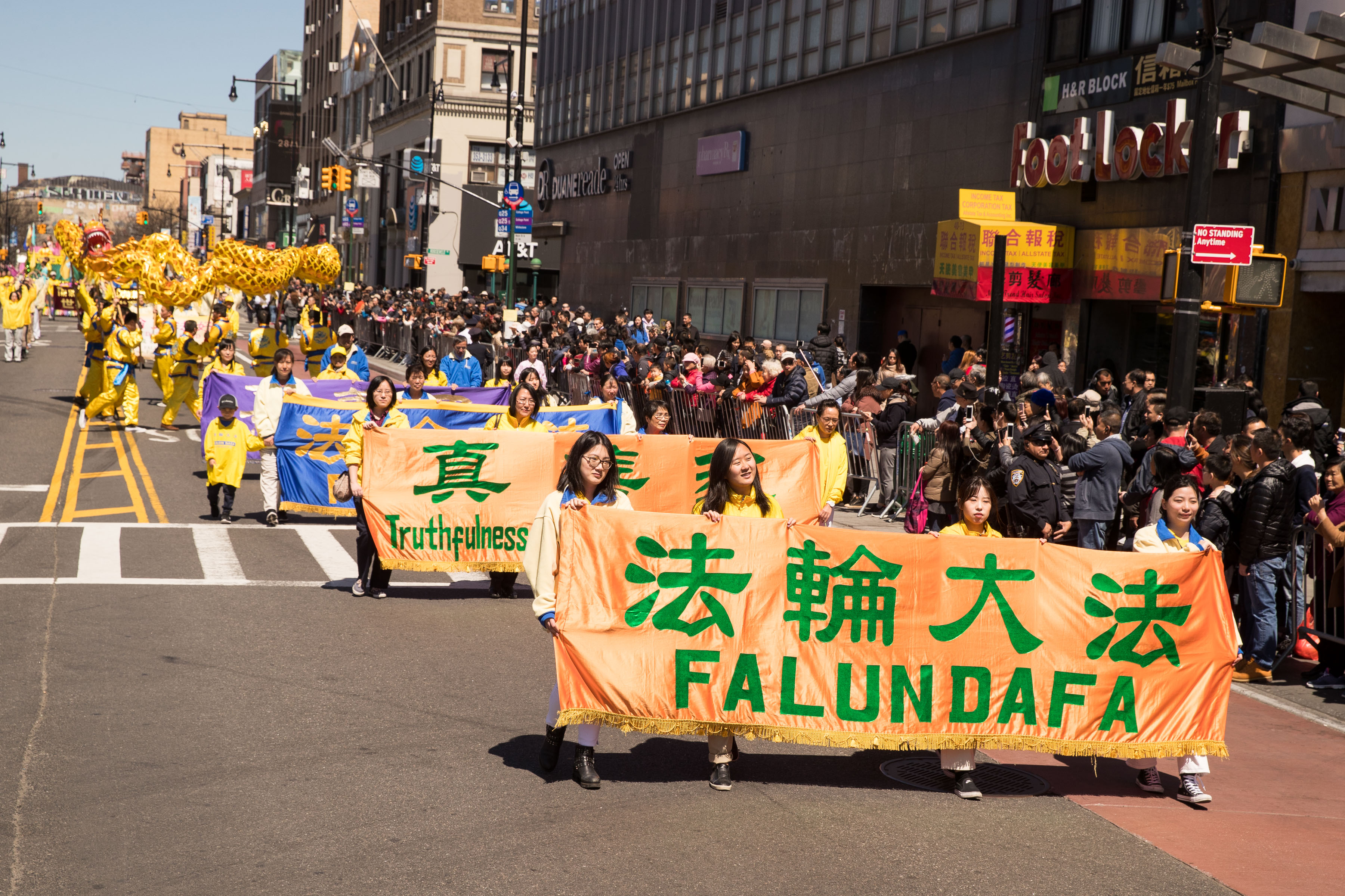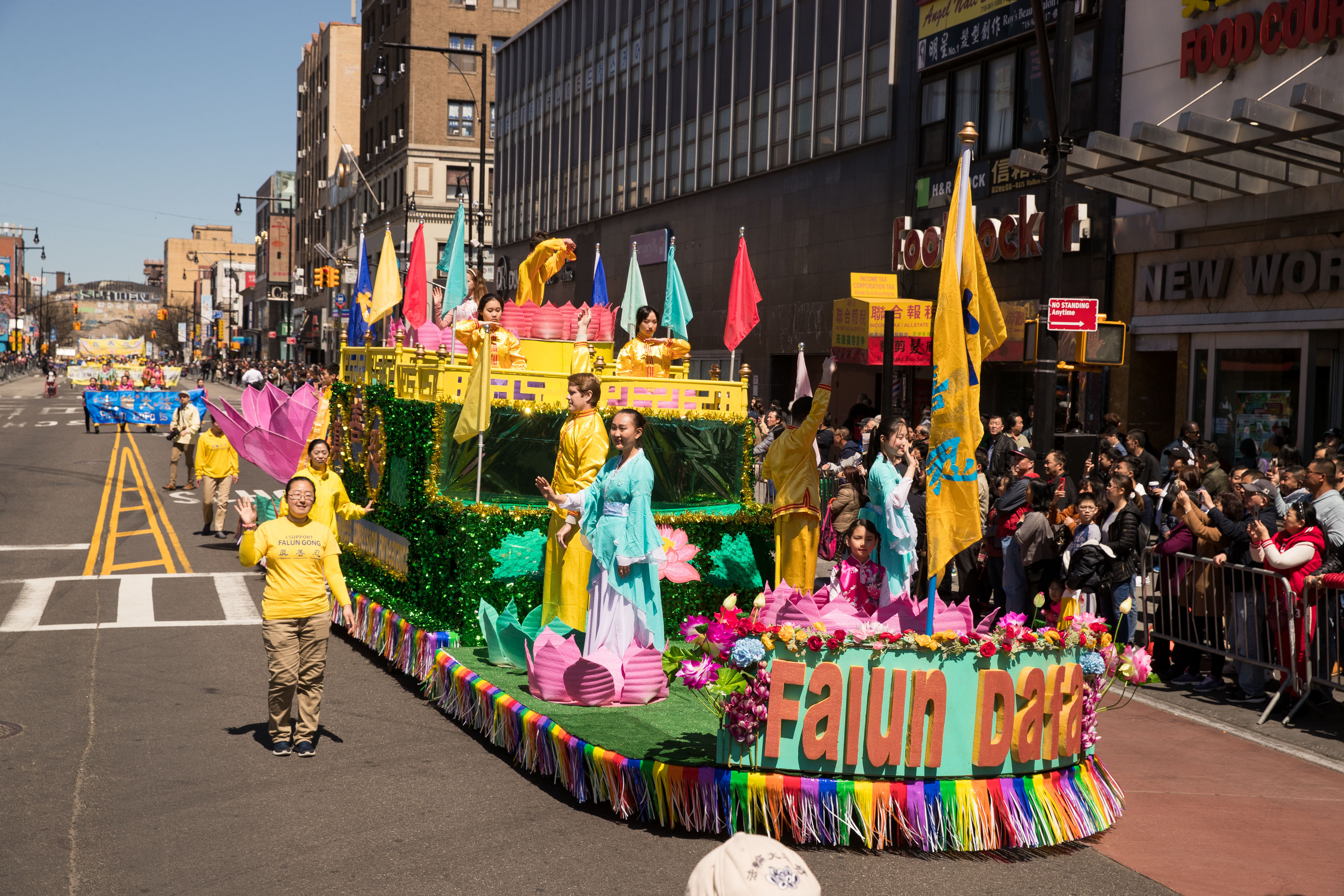 当天纽约市万里无云,阳光明媚,中午十二点,游行队伍从法拉盛三十八大道起步,浩浩荡荡,沿法拉盛中心区缅街(Main St.)、三福大道(Sanford Ave)、凯辛娜大道(Kissena Ave)行进,最后到达法拉盛图书馆旁举行集会,全程历时三个小时。今年游行路线加长,使游行路线覆盖包括7号地铁站在内的法拉盛緬街上华人最集中的整个地段。游行队伍由纽约市警察局警车为游行开道,数十名警察为游行与集会提供全程安保。